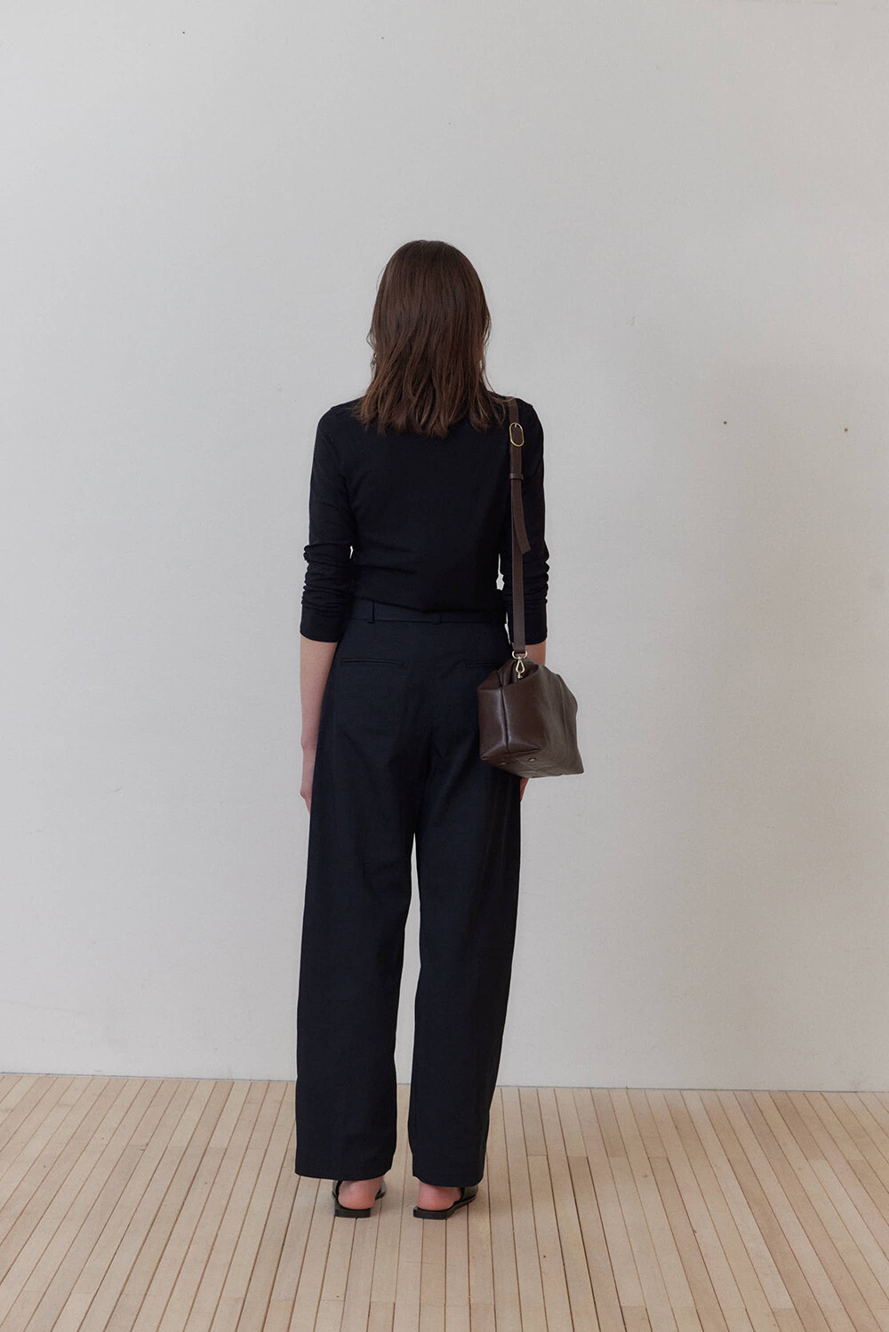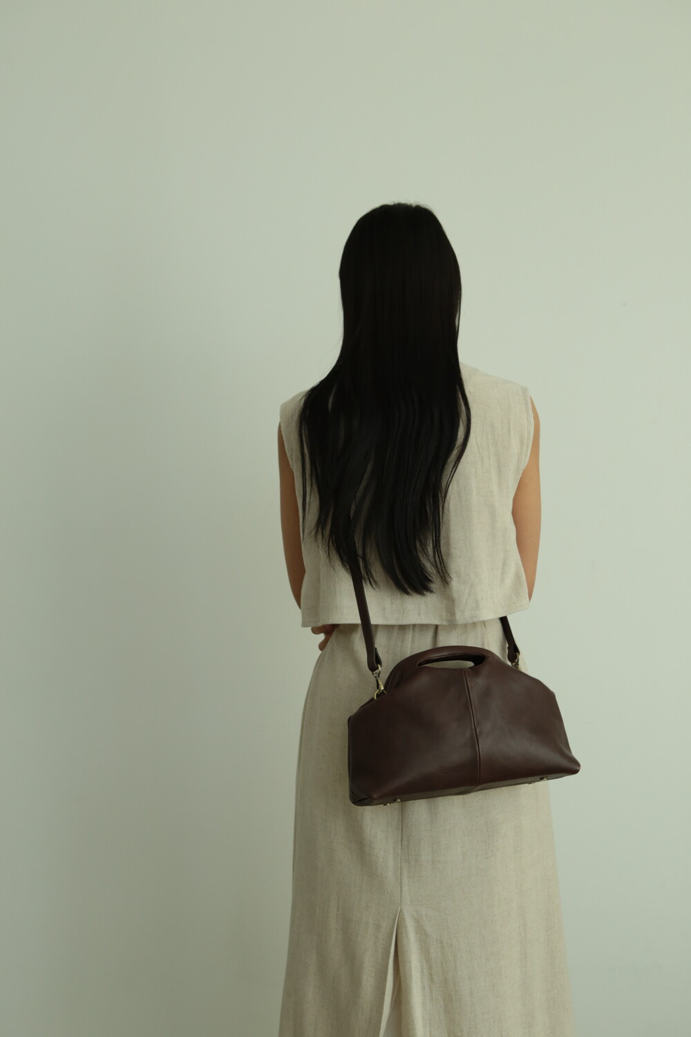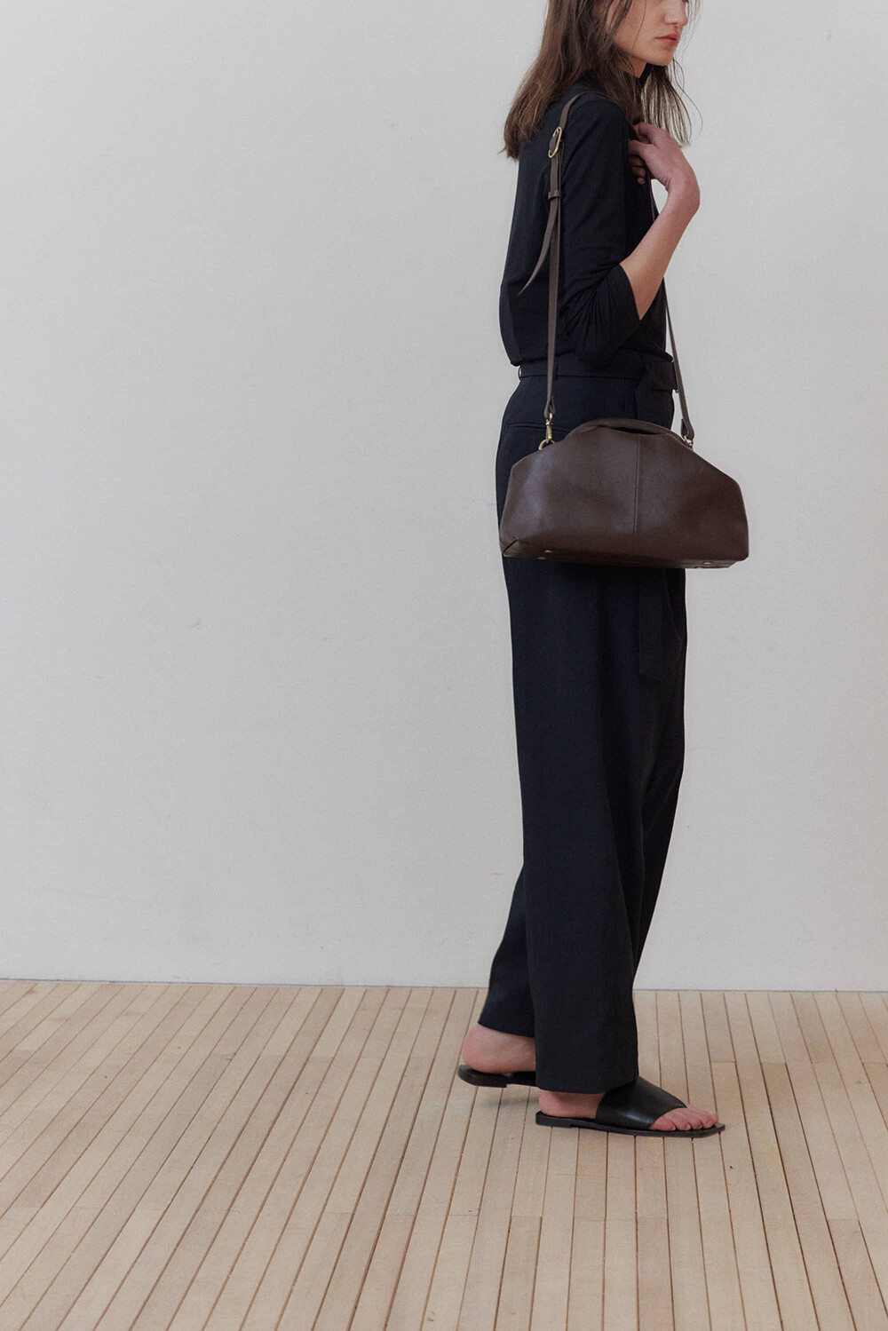초기에는 가죽이 아직 길들여지지 않아 다소 볼륨감 있게 보일 수 있으며, 사용할수록 부드럽게 변하면서 매트한 실루엣으로 자리잡습니다.