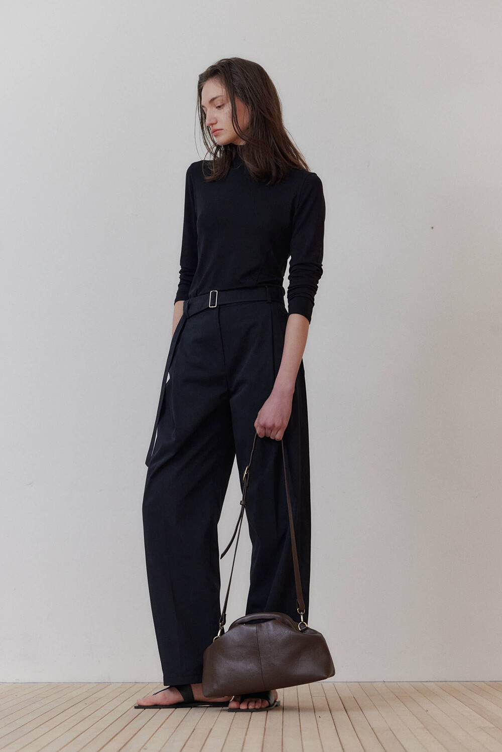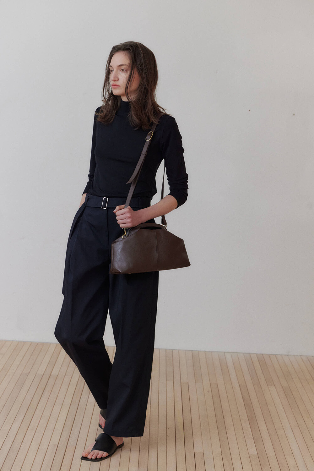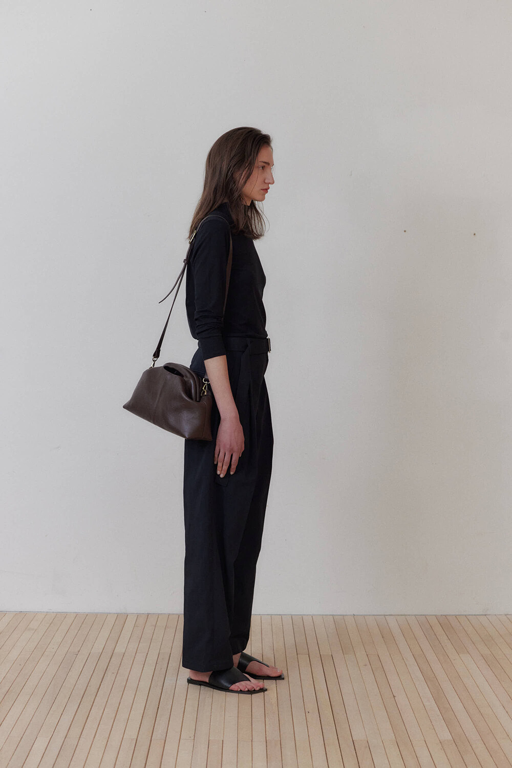 초기에는 가죽이 아직 길들여지지 않아 다소 볼륨감 있게 보일 수 있으며, 사용할수록 부드럽게 변하면서 매트한 실루엣으로 자리잡습니다.