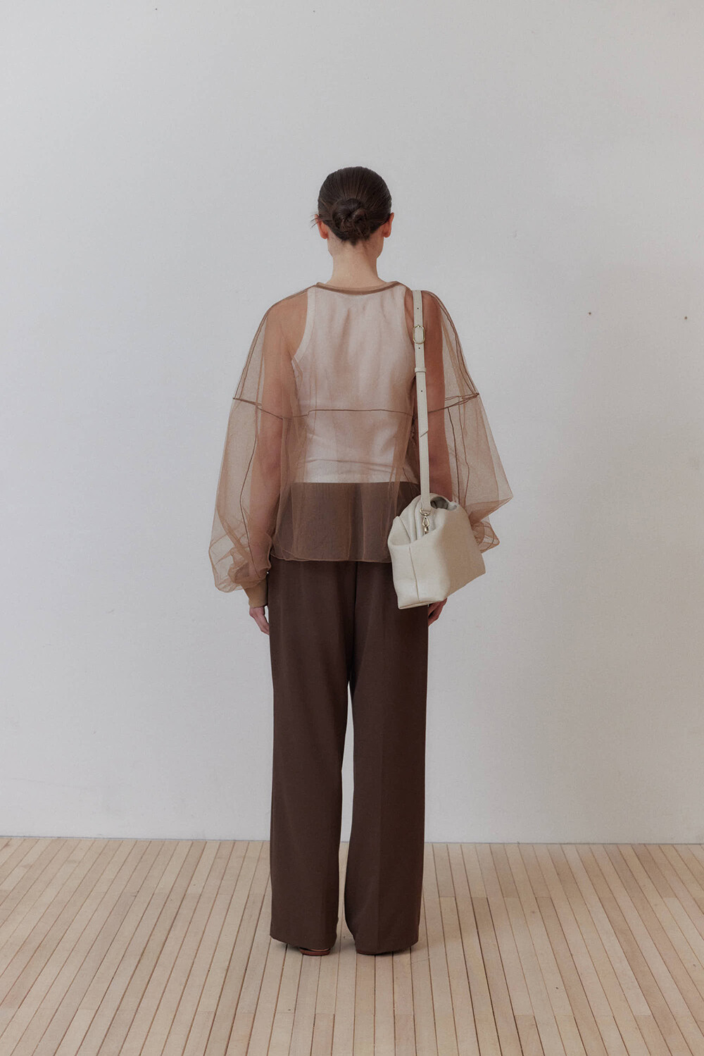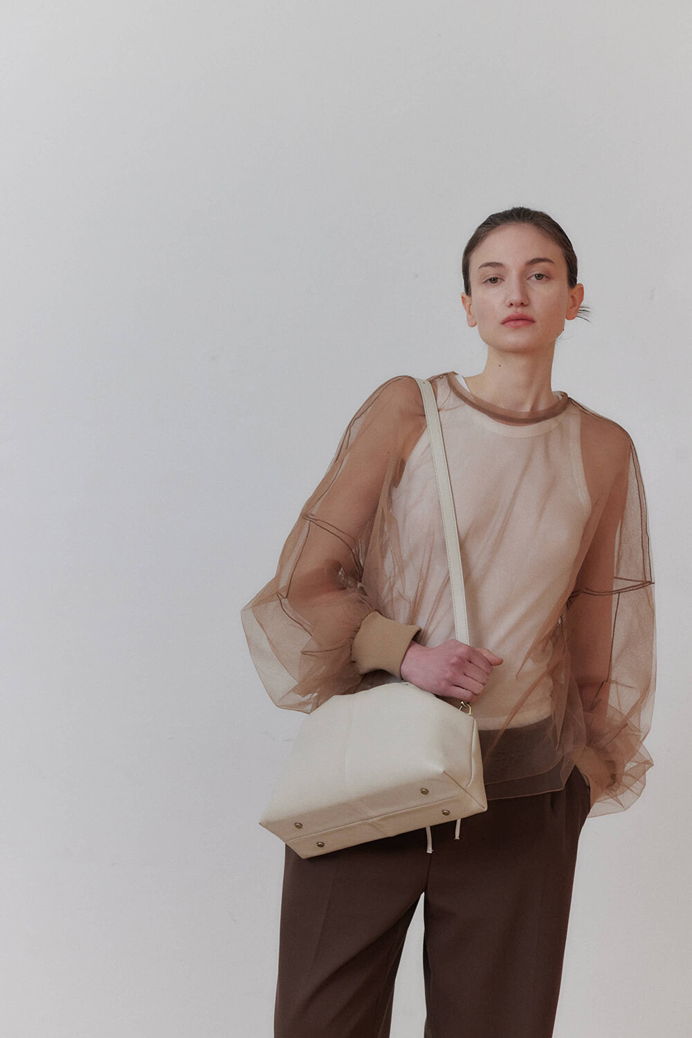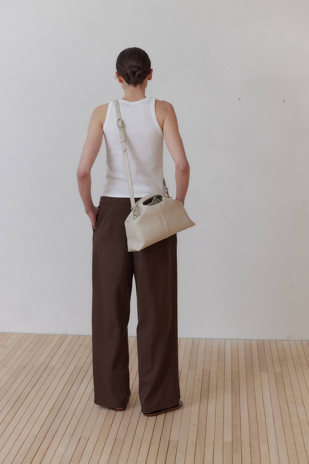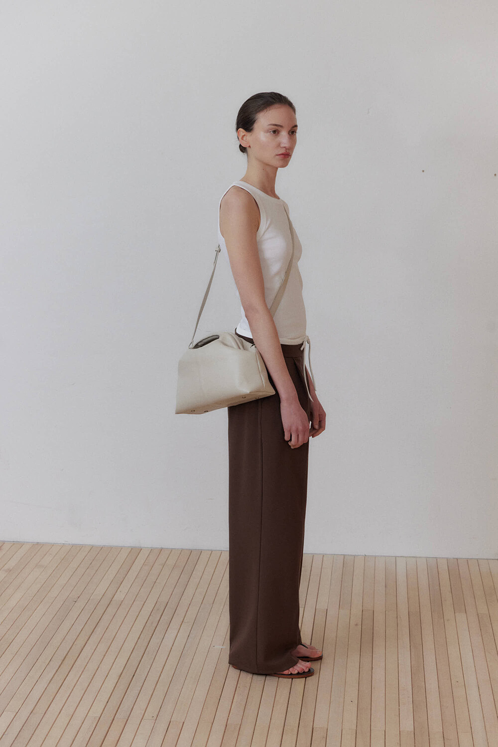 초기에는 가죽이 아직 길들여지지 않아 다소 볼륨감 있게 보일 수 있으며, 사용할수록 부드럽게 변하면서 매트한 실루엣으로 자리잡습니다.