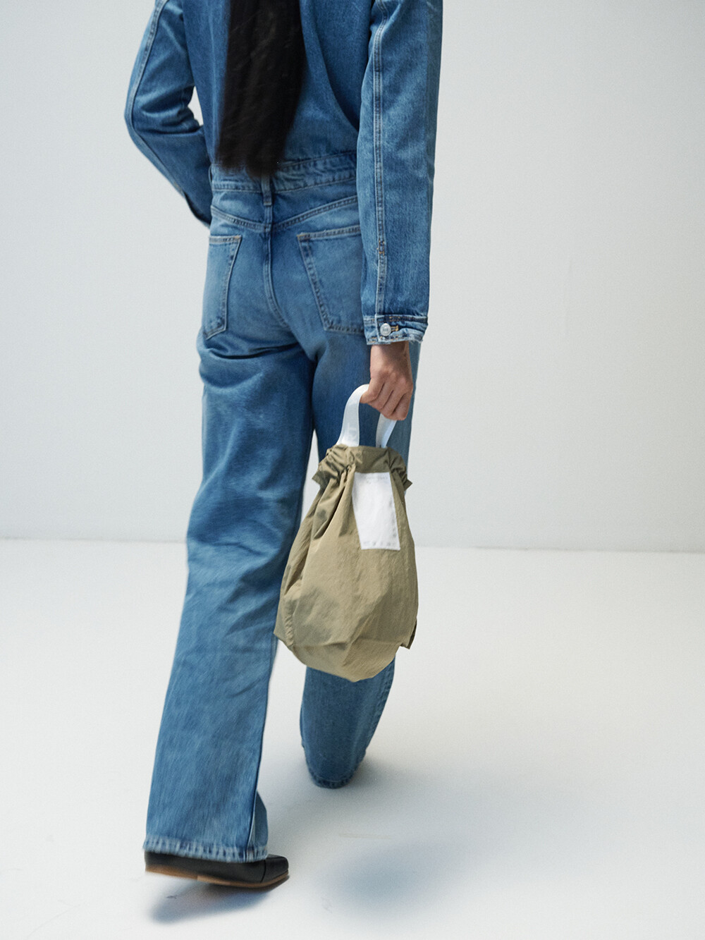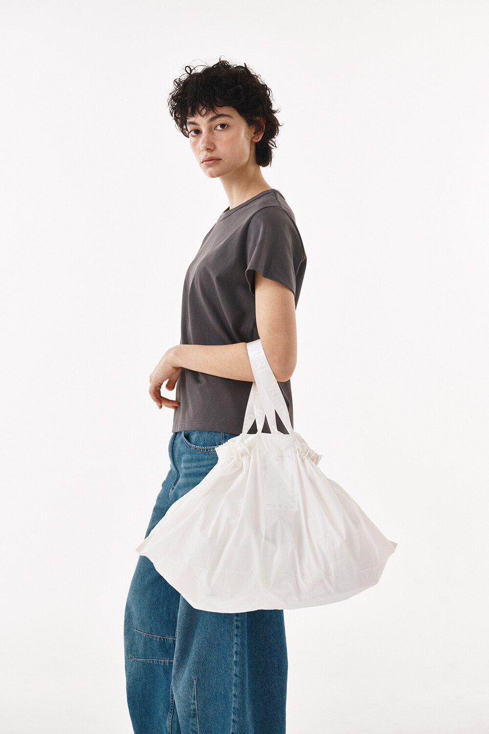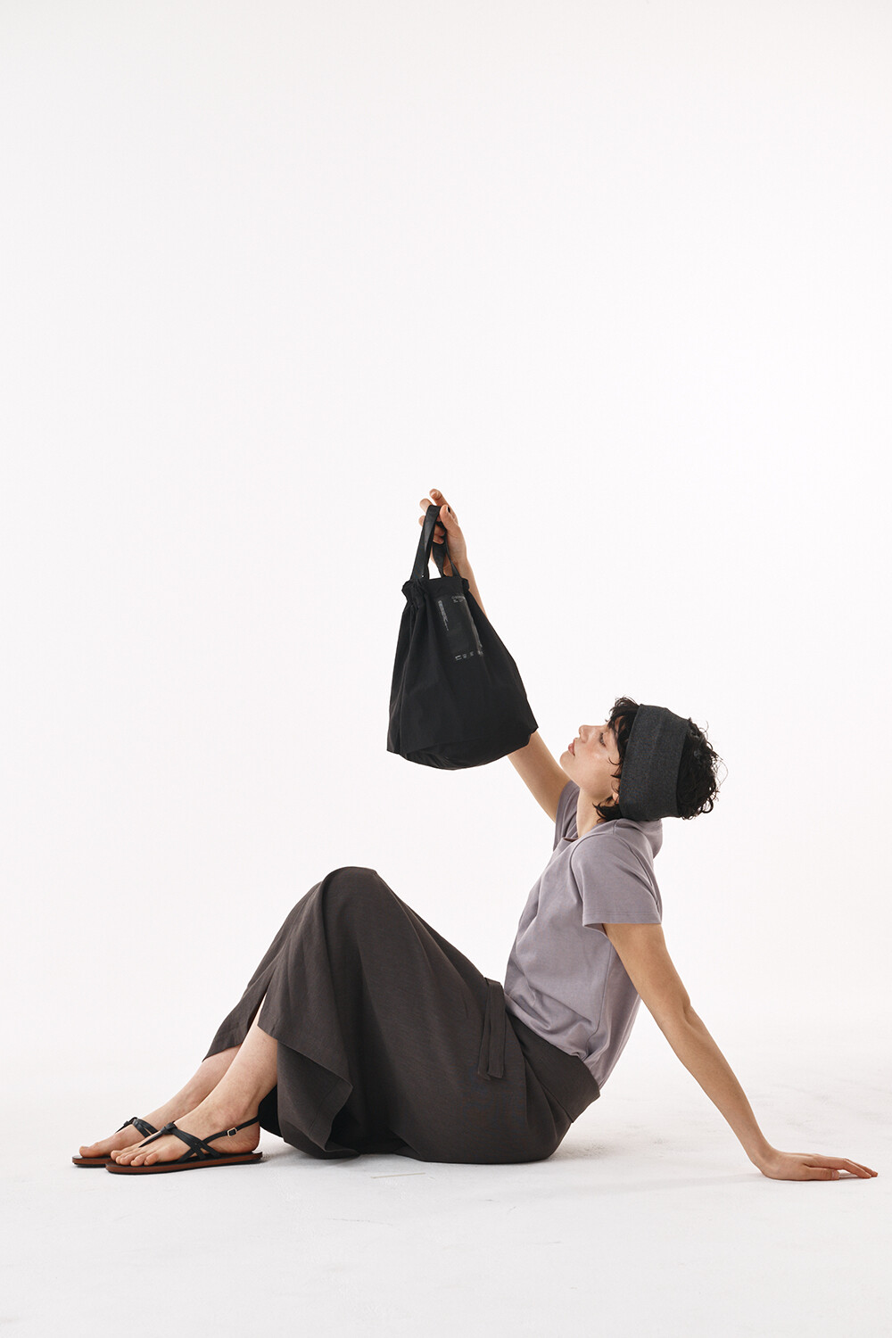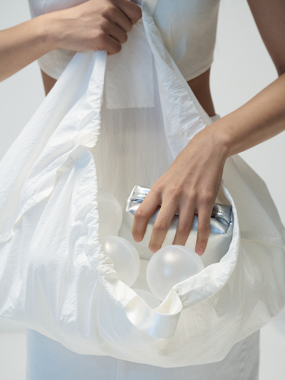 - 플랫한 형태의 가방에 물건을 넣으면 풍부한 실루엣으로 변형