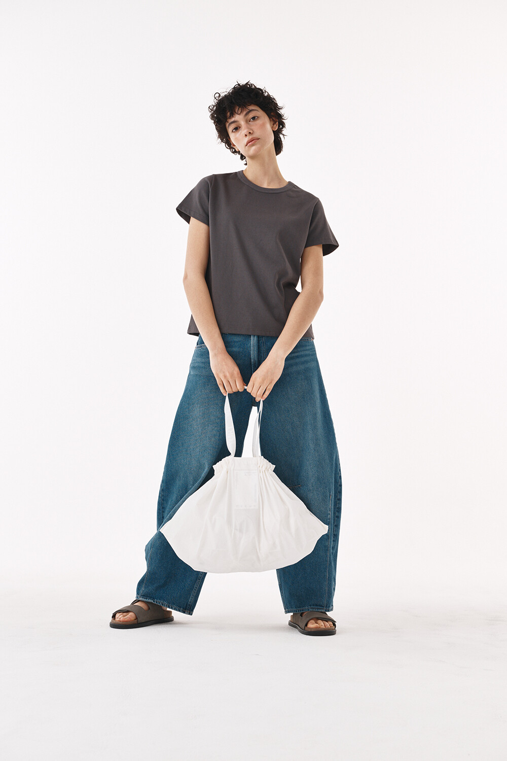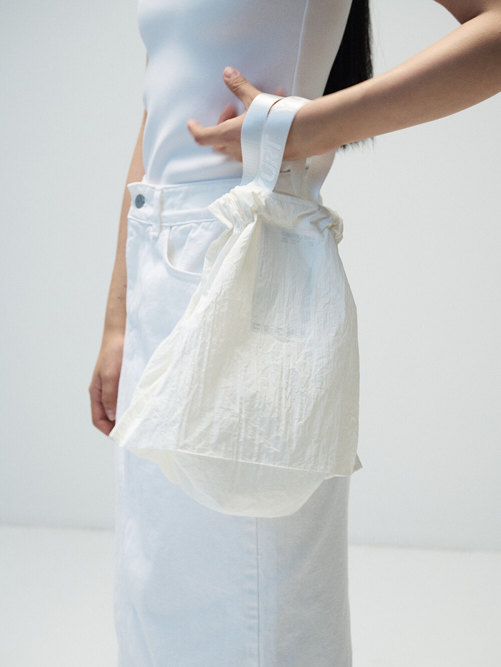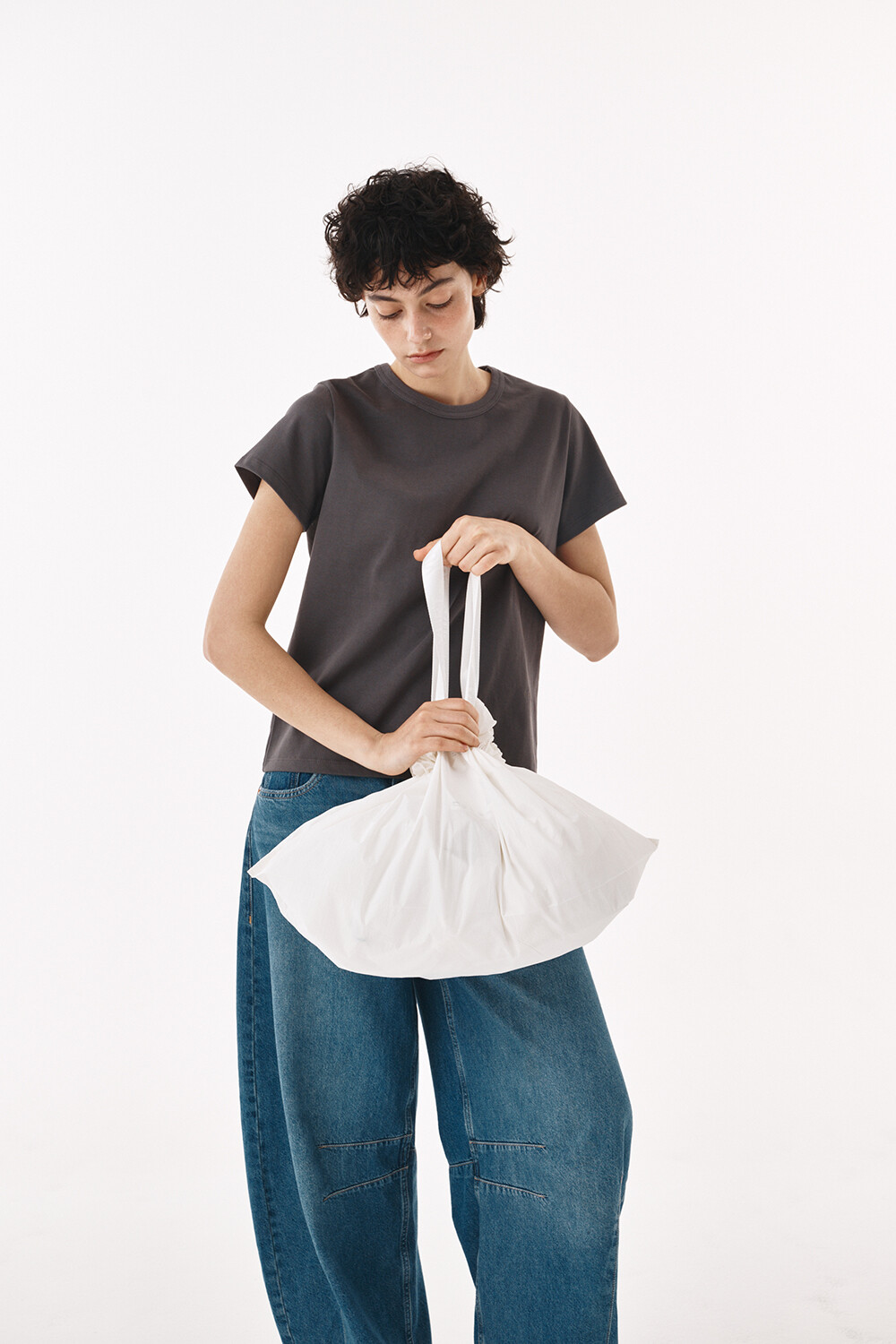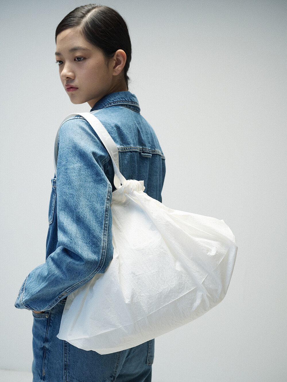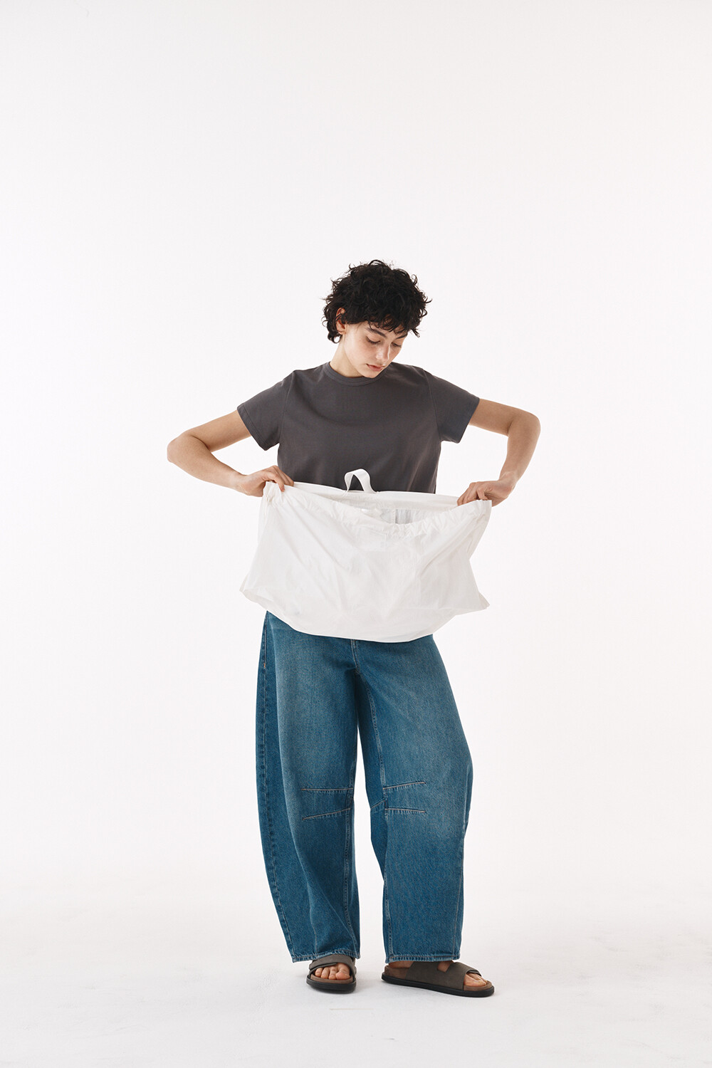 - 플랫한 형태의 가방에 물건을 넣으면 풍부한 실루엣으로 변형