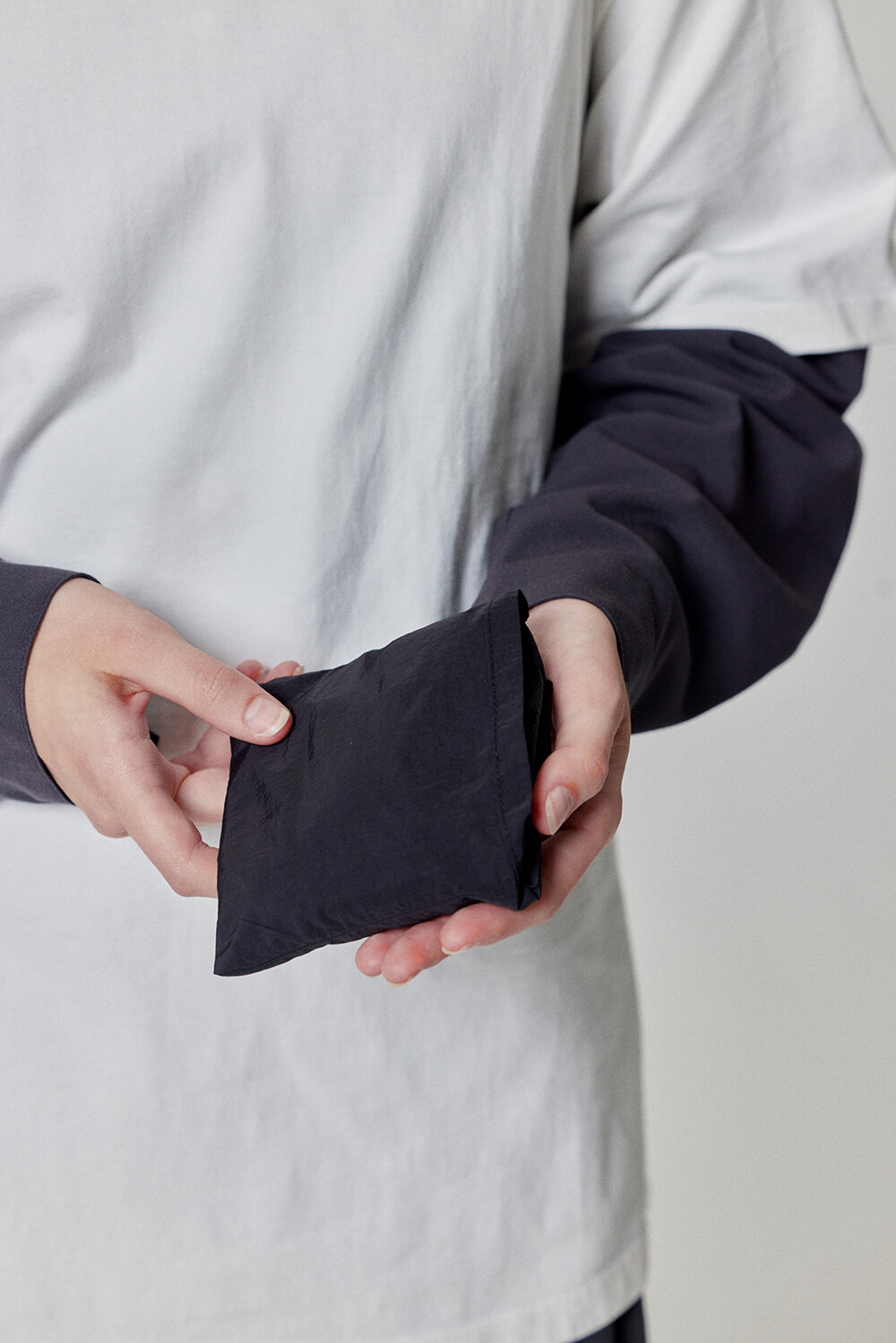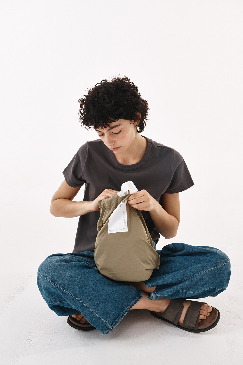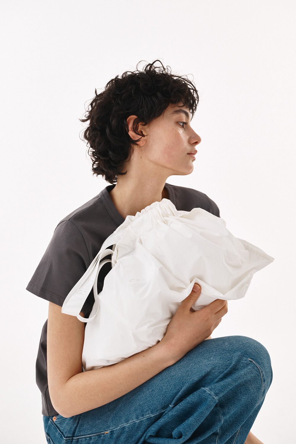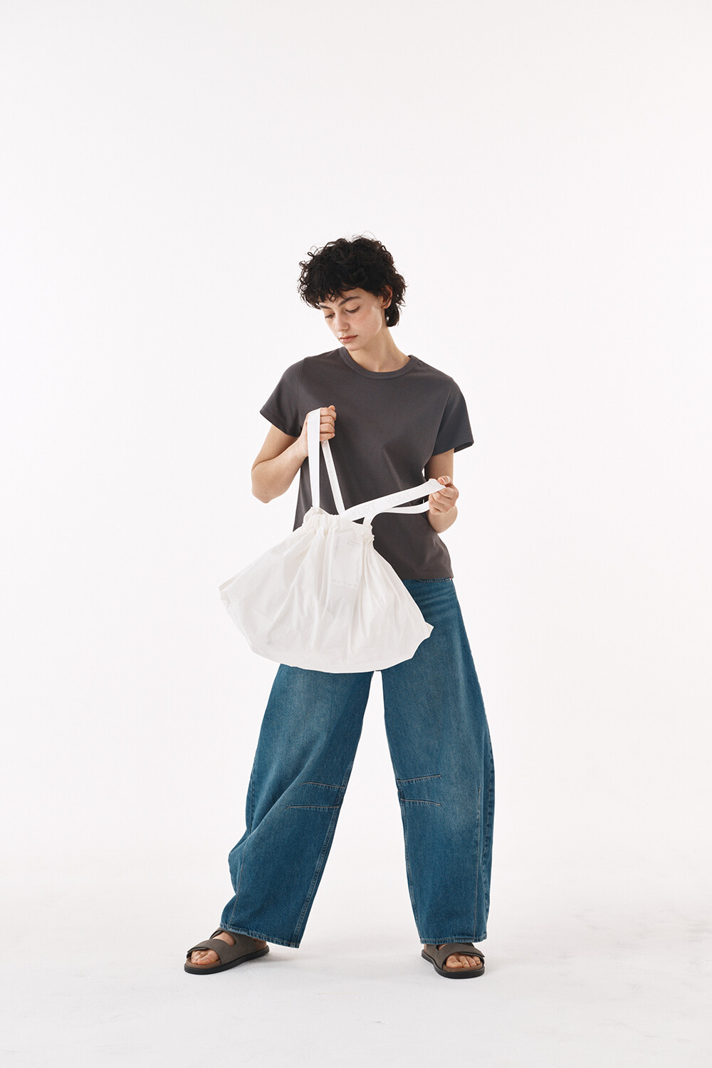 - 플랫한 형태의 가방에 물건을 넣으면 풍부한 실루엣으로 변형