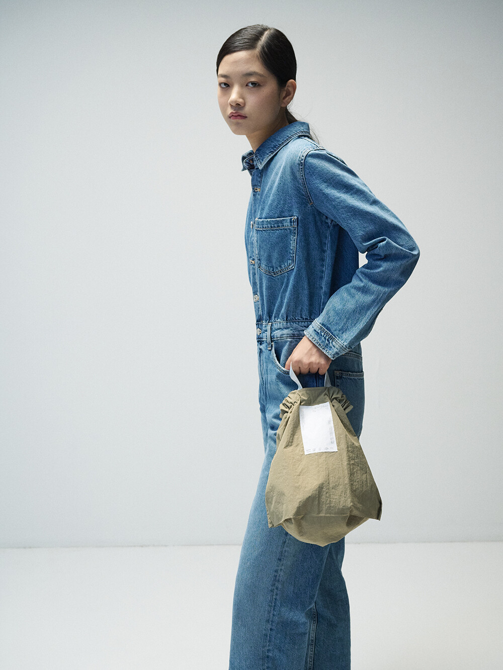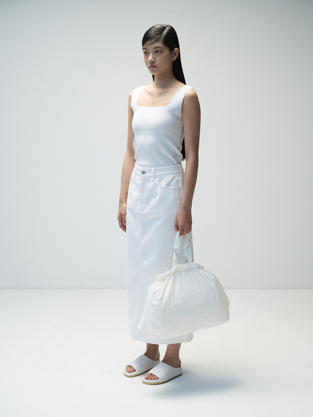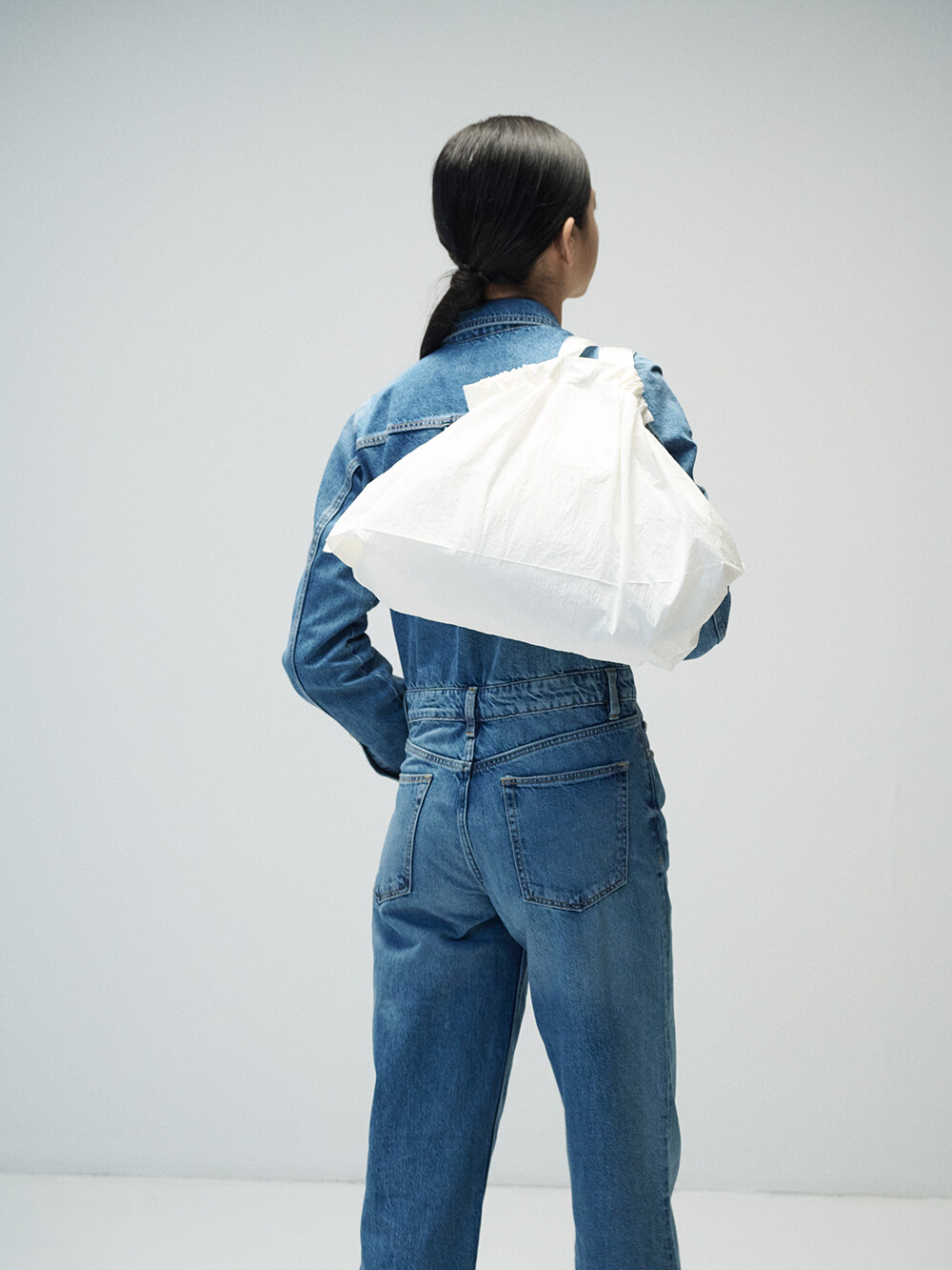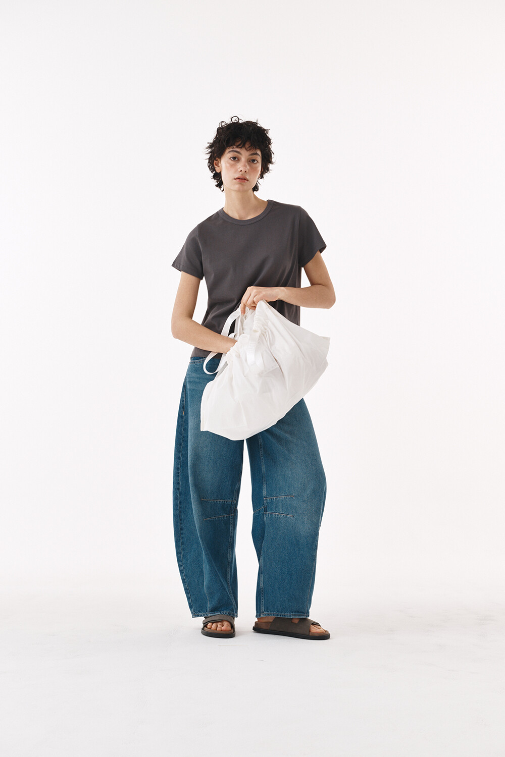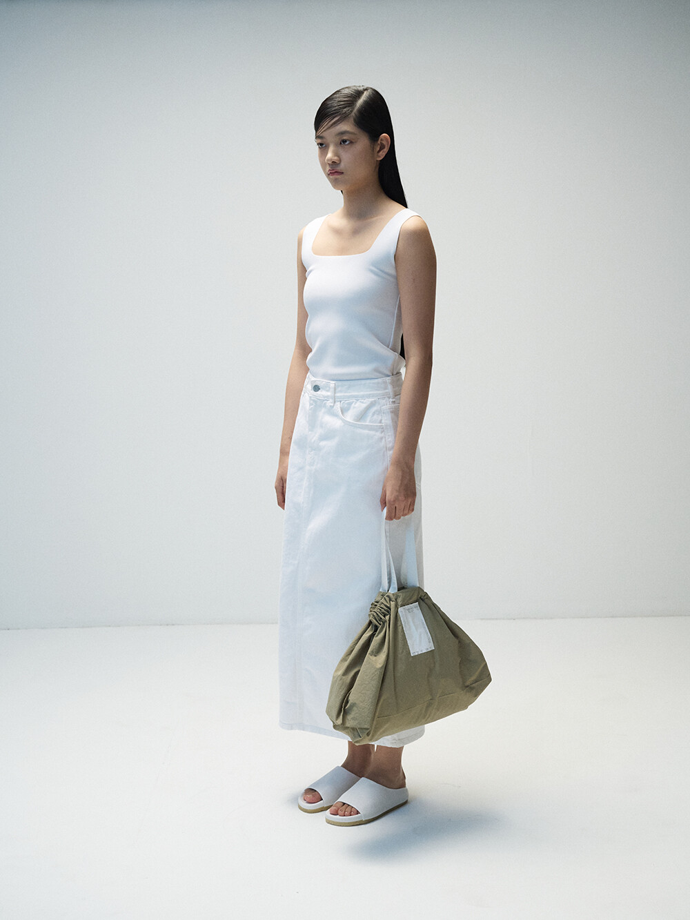 - 플랫한 형태의 가방에 물건을 넣으면 풍부한 실루엣으로 변형