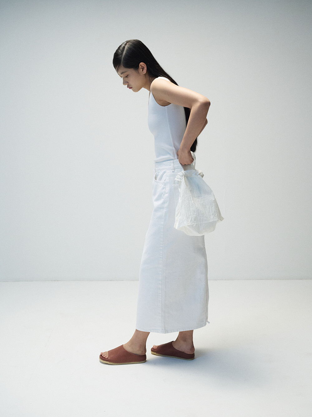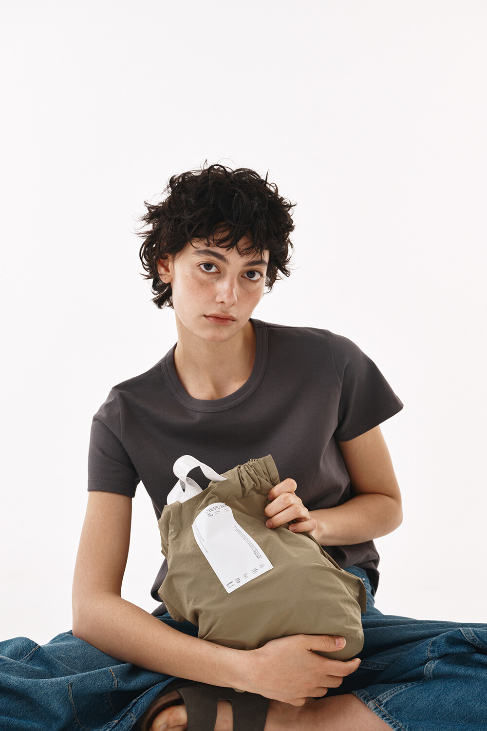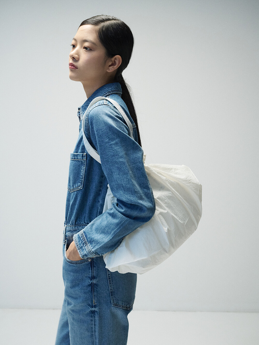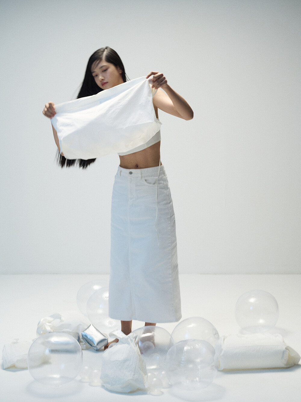 - 플랫한 형태의 가방에 물건을 넣으면 풍부한 실루엣으로 변형