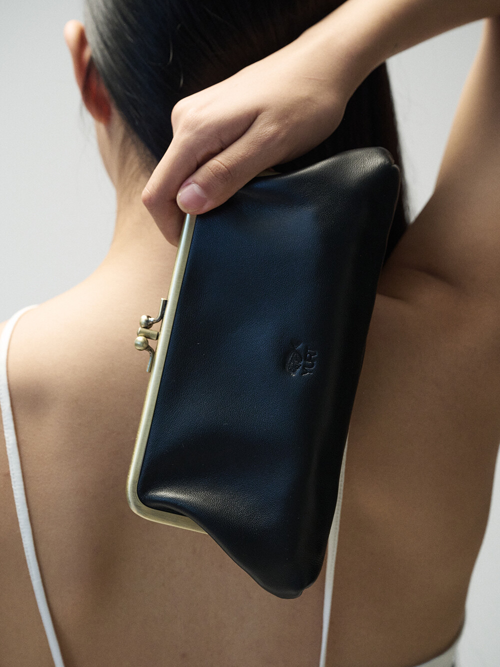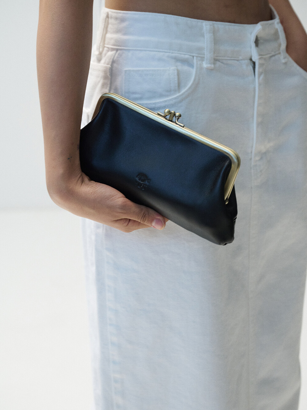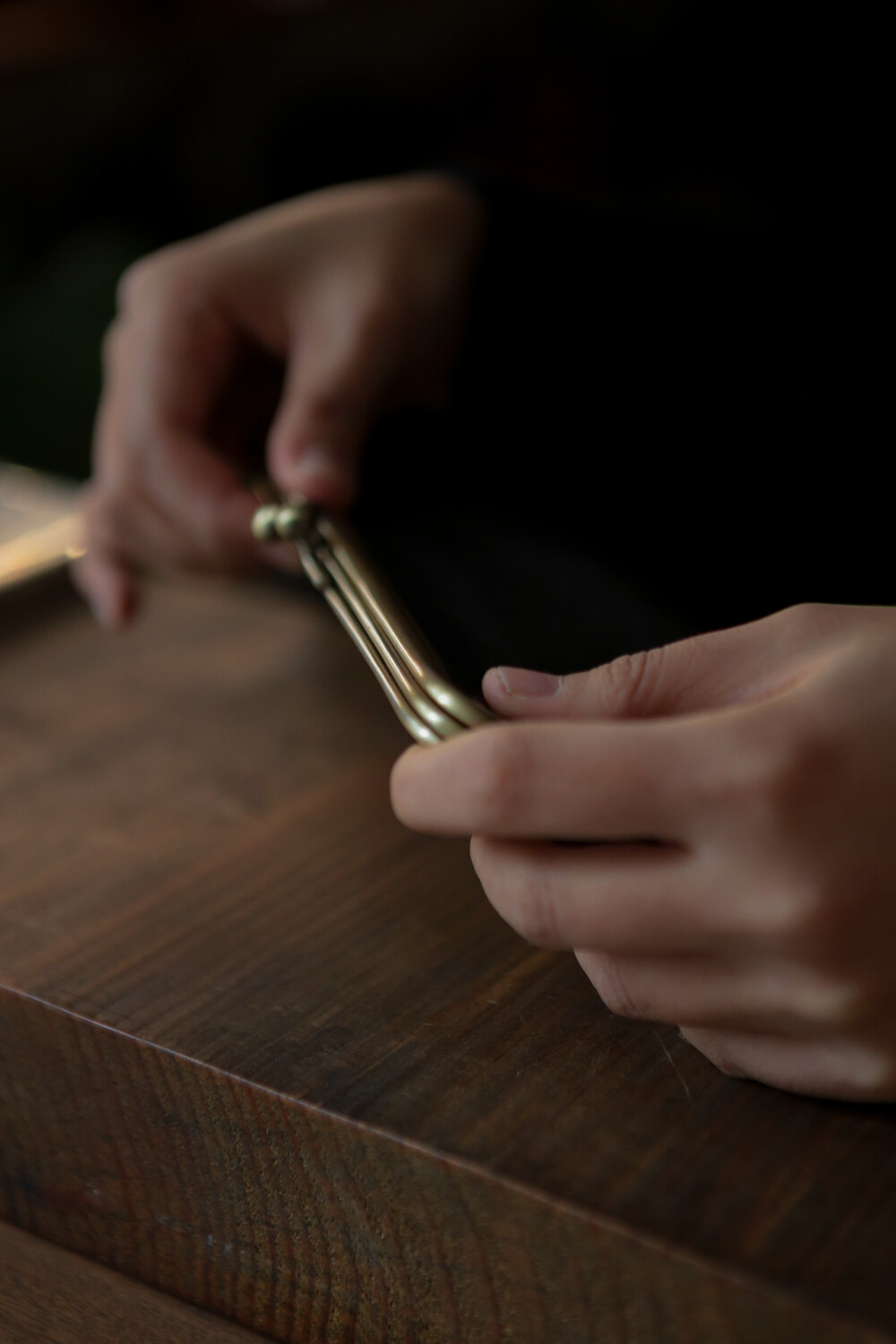 유르트 프레임 상품의 경우, 가죽을 재봉한 뒤 뒤집어 프레임을 연결하는 과정 중 상품을 여닫을 수 있도록 프레임과 가죽 사이에 여유 공간을 남겨두고 마감합니다. 이때 안감의 마감 부분이 노출됩니다.