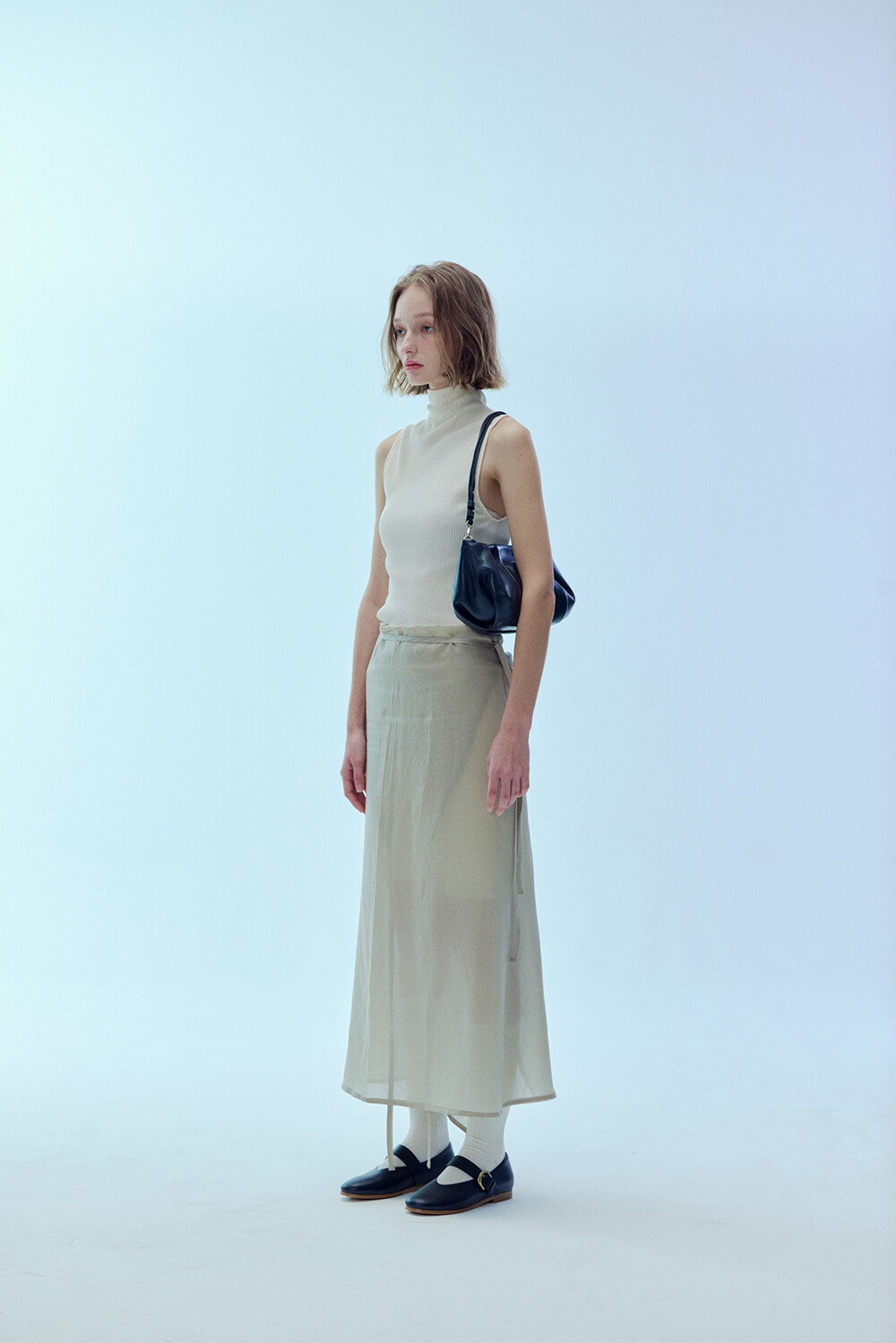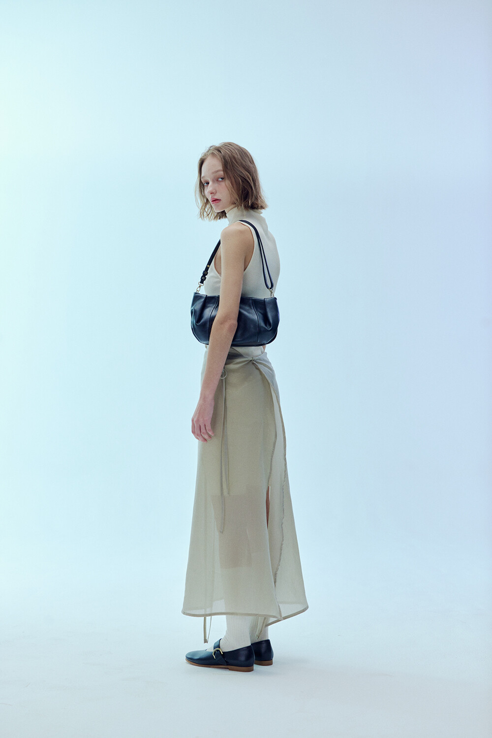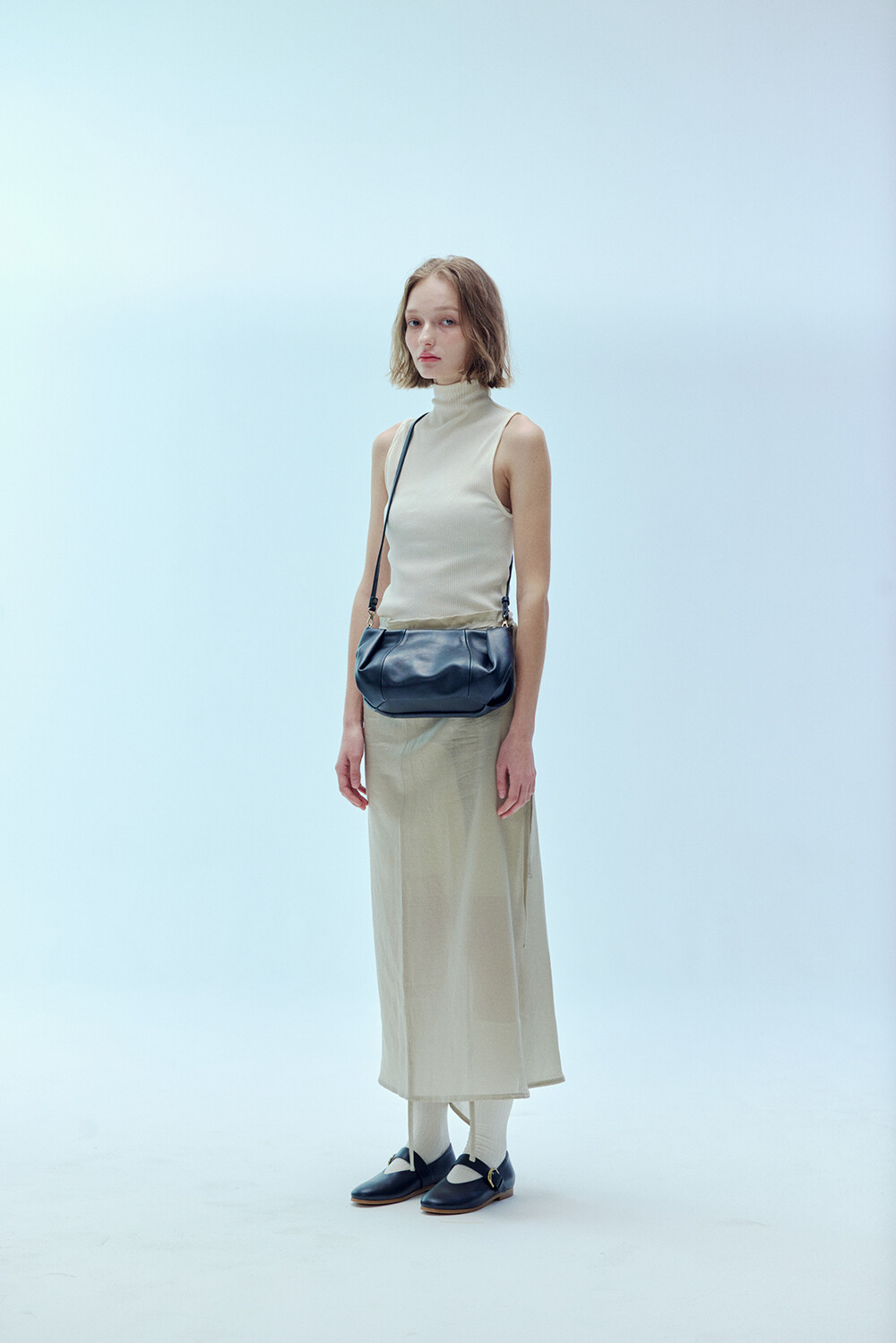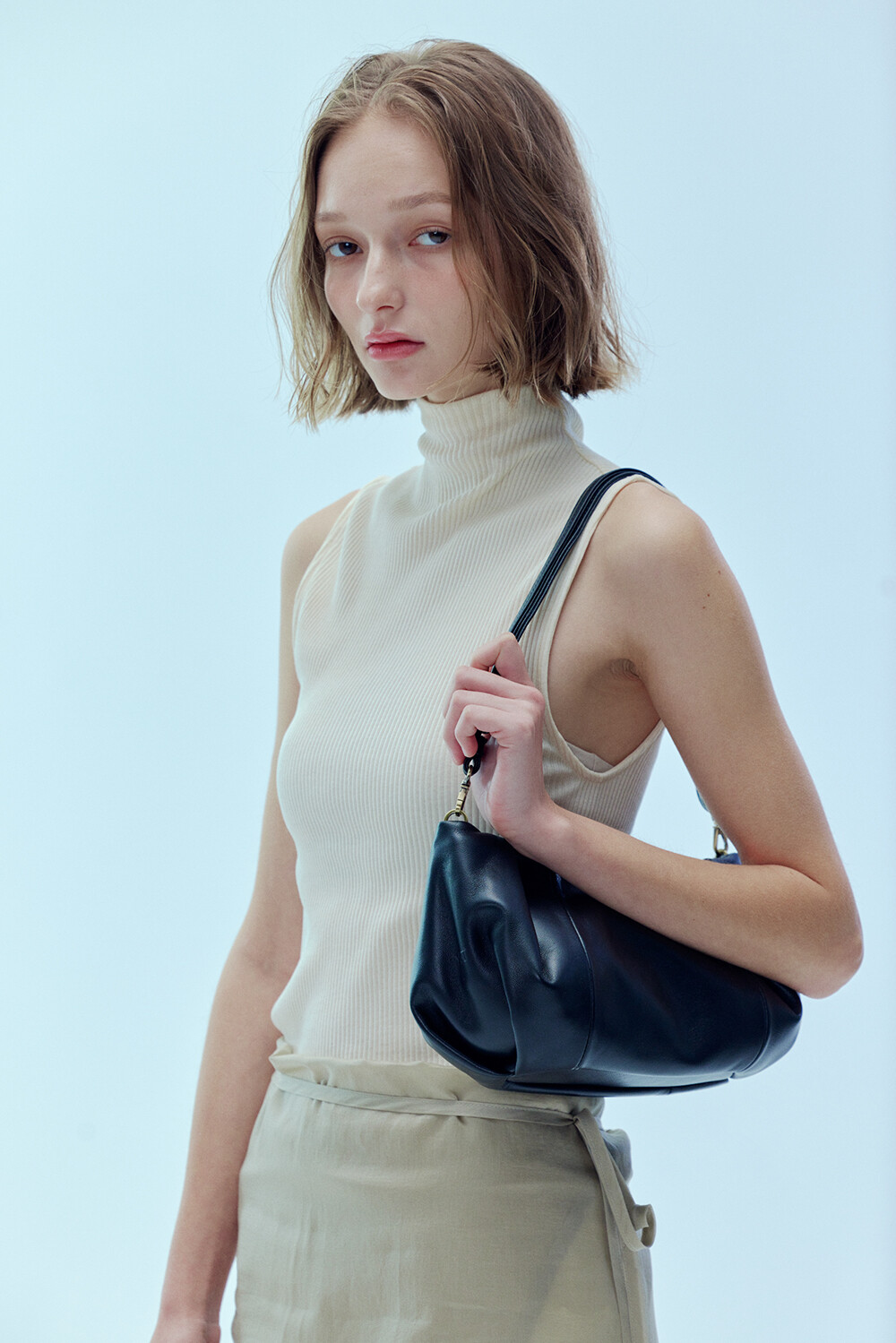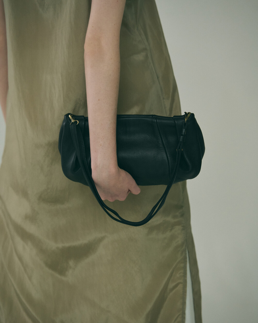 피망의 단면을 떠올리게 하는 부드러운 양가죽 가방입니다. 입구 부분과 밑면의 턱이 반대 방향으로 잡히며 만들어지는 실루엣이 매력입니다. 바네 프레임을 사용하여 여닫기에 편리하며 프레임을 안으로 숨겨 입구에 유연한 느낌을 더했습니다.
