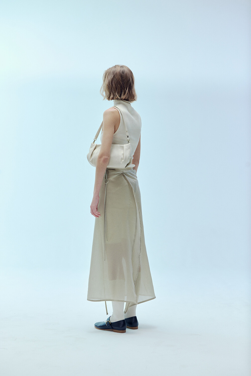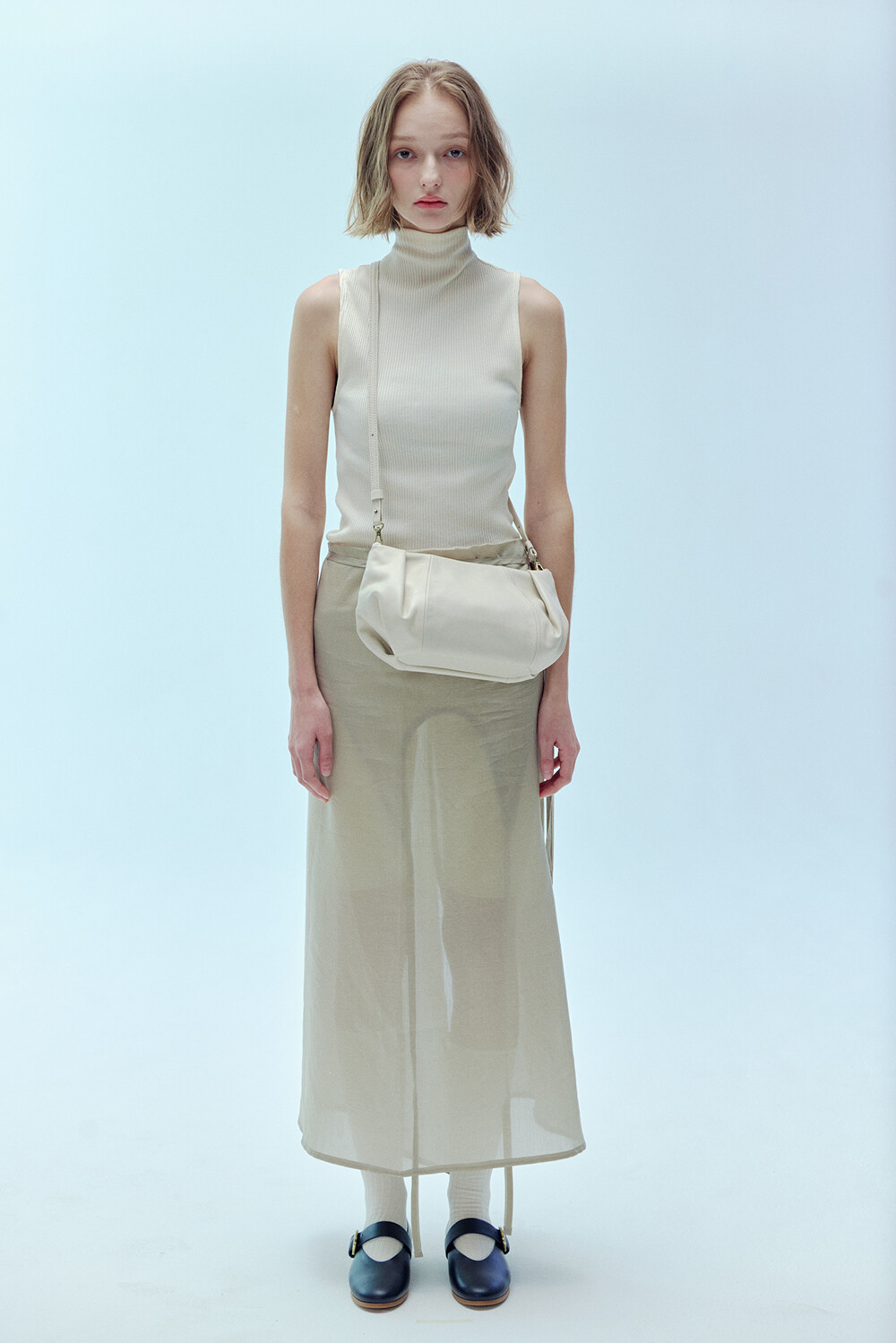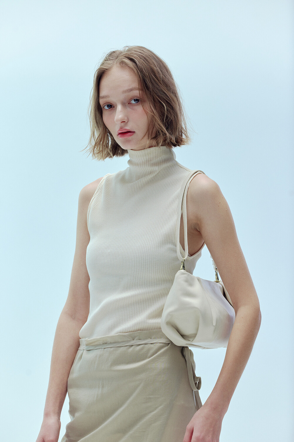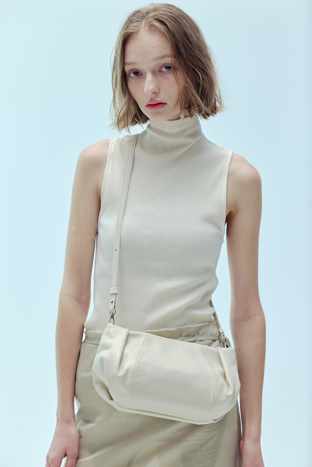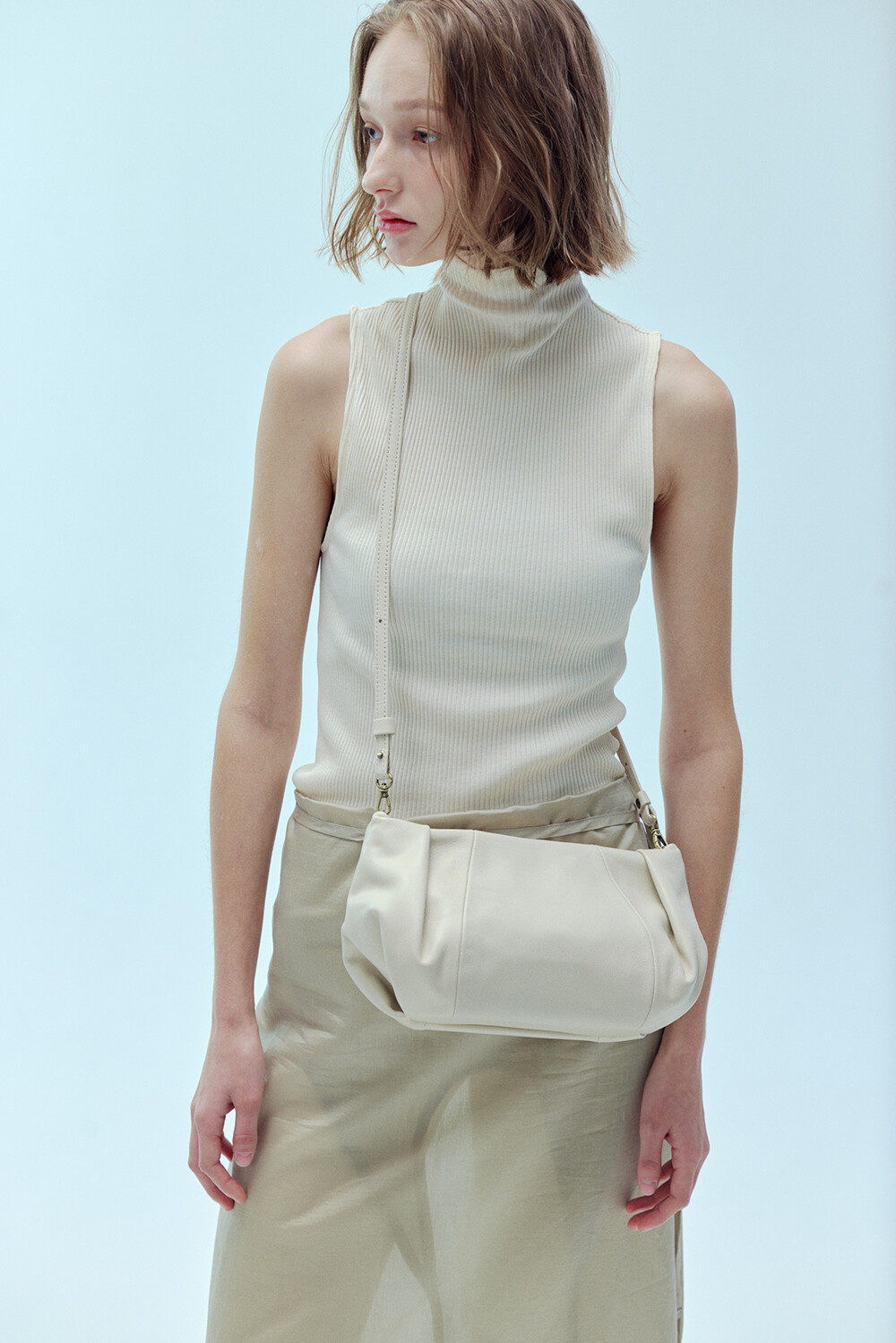 피망의 단면을 떠올리게 하는 부드러운 양가죽 가방입니다. 입구 부분과 밑면의 턱이 반대 방향으로 잡히며 만들어지는 실루엣이 매력입니다. 바네 프레임을 사용하여 여닫기에 편리하며 프레임을 안으로 숨겨 입구에 유연한 느낌을 더했습니다.