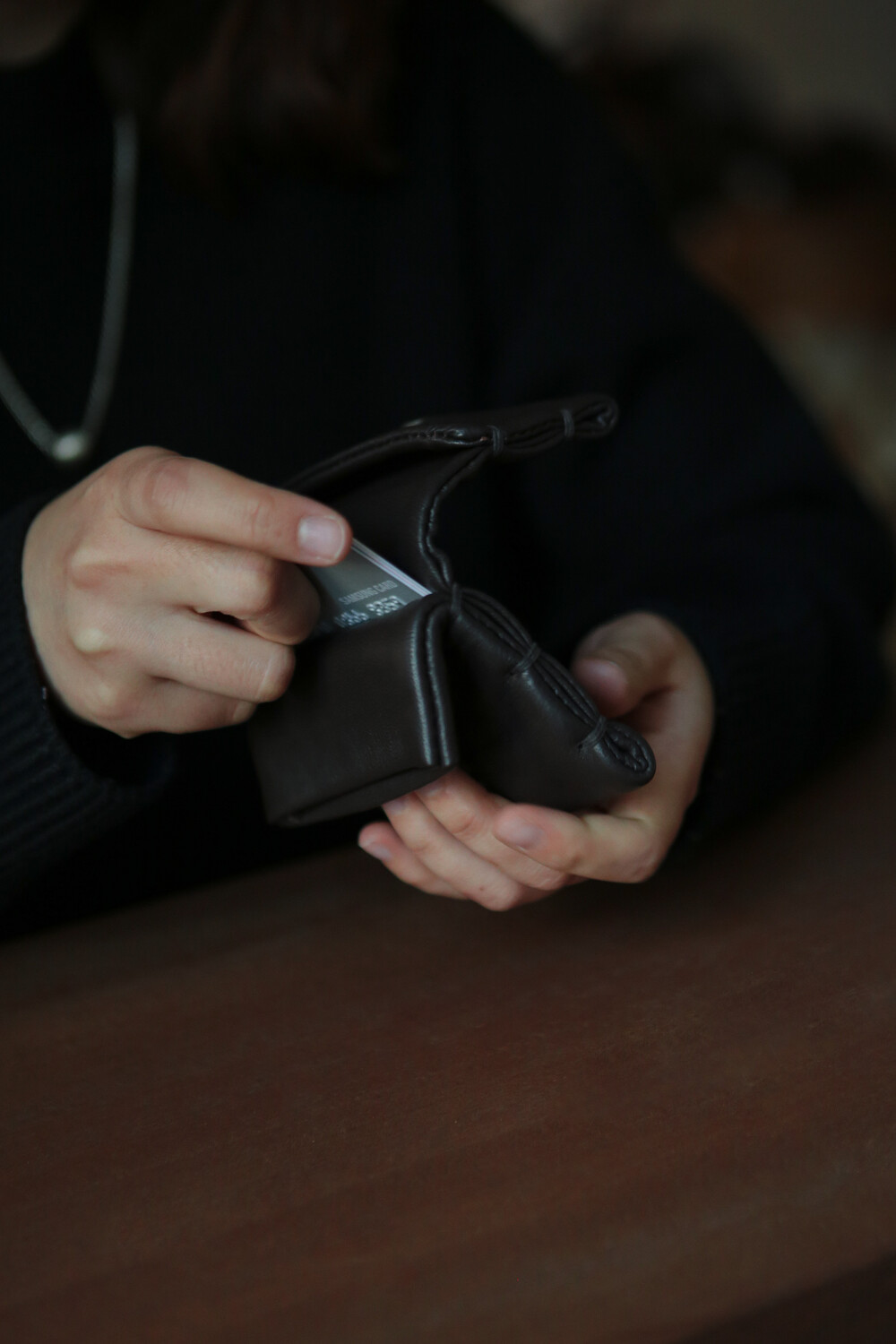 총 3곳의 수납 공간으로 구성되어 있으며, 카드나 명함이 살짝 드러나는 오픈 포켓 1칸과 깊이감 있는 포켓 2칸이 있어 동전까지 안전하게 보관할 수 있습니다.
