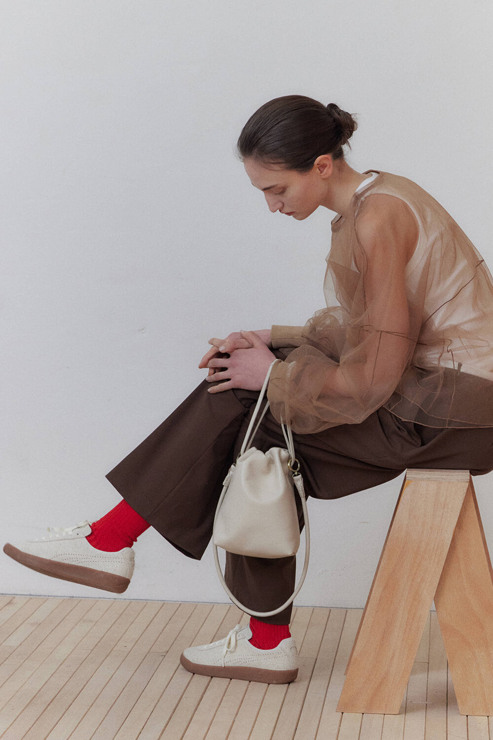- 복주머니 형태를 미니멀하고 가볍게 만들어 낸 쓰리웨이 가방입니다.