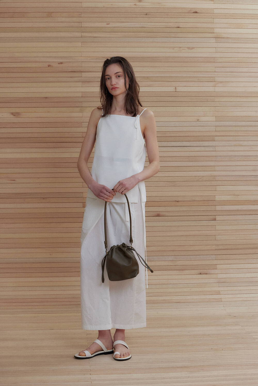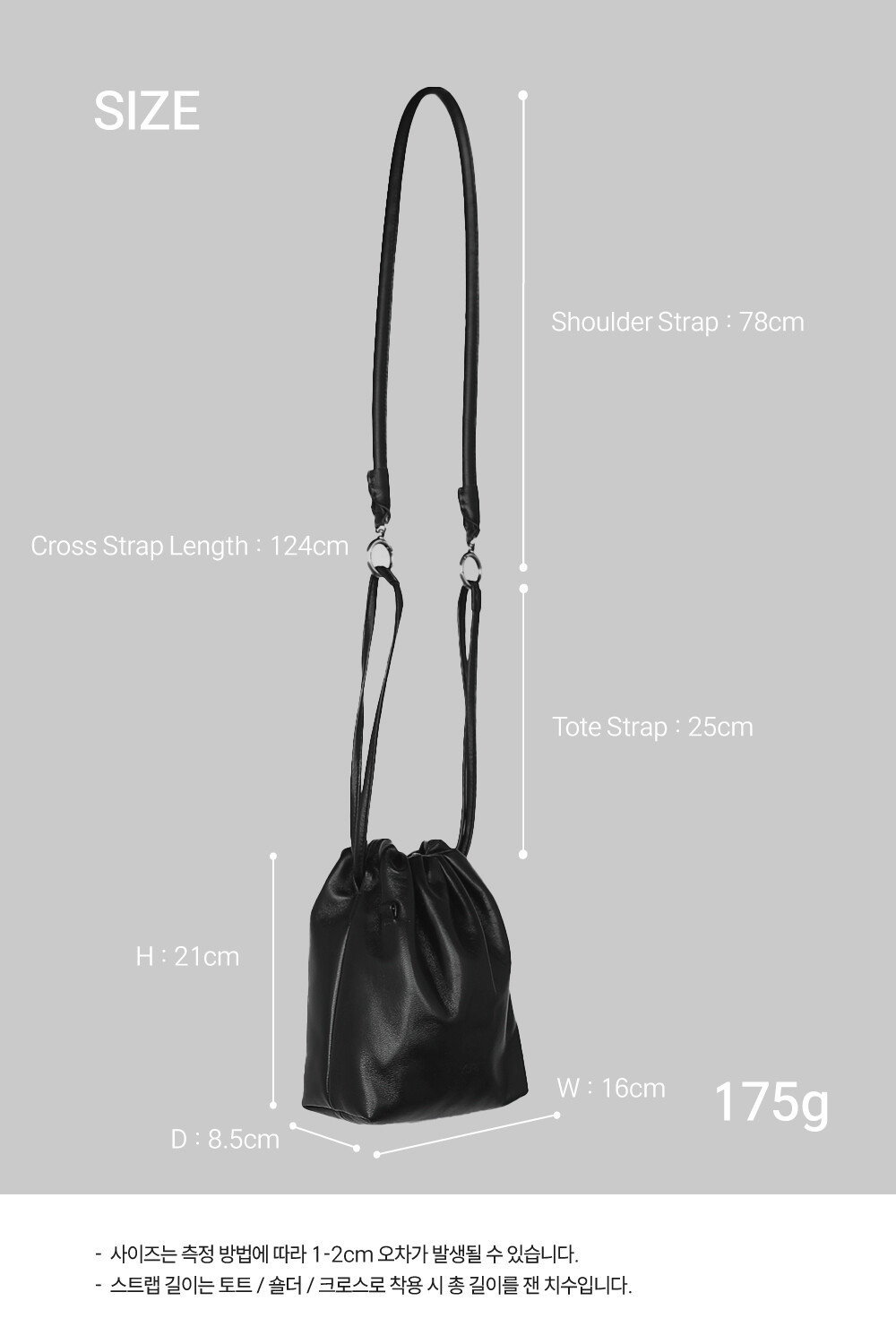 - 분리 가능한 토트 스트랩을 바디에 연결시 숄더로, 드로스트링에 연결시 크로스가능한 길이로 제작되어 있습니다.