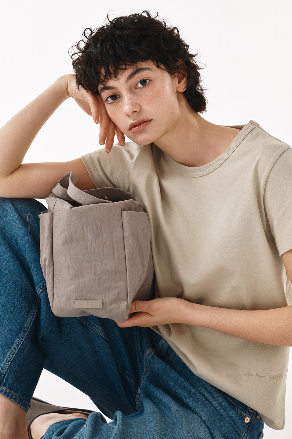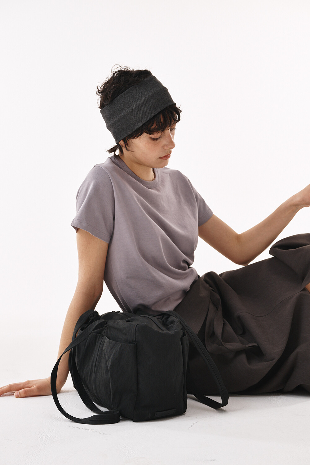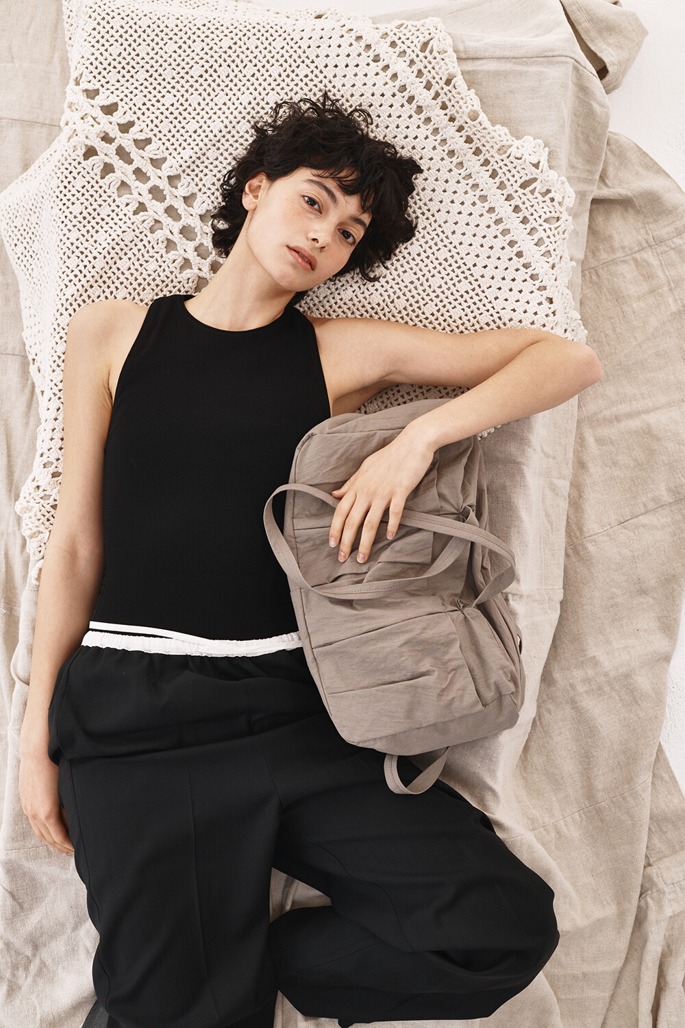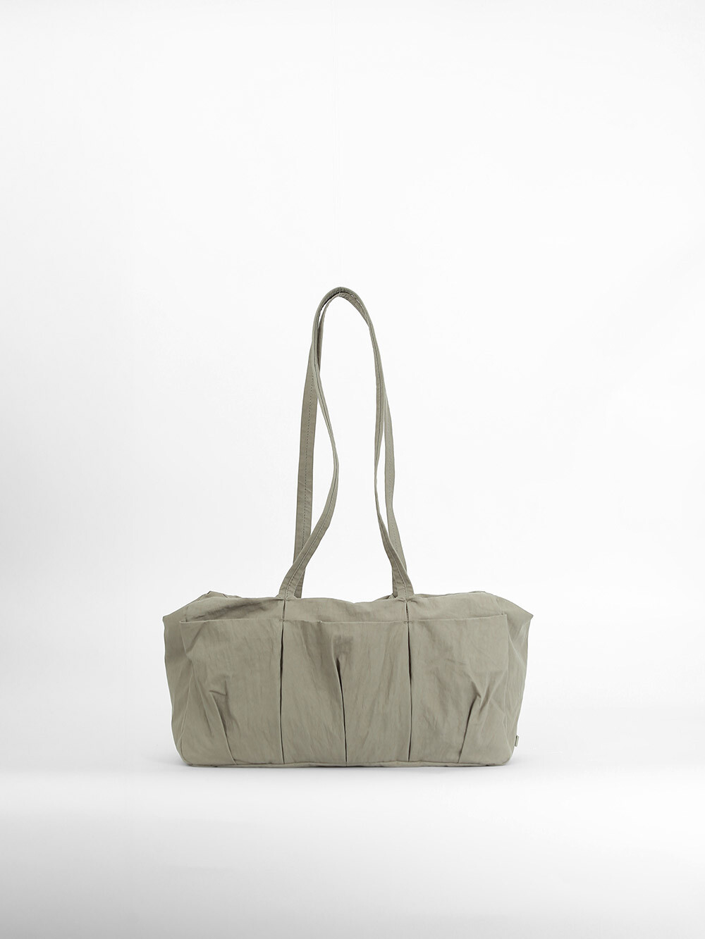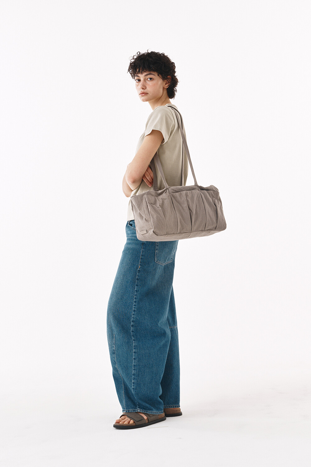 - 겉으로 보이는 봉제를 최소화하고 원단을 접어서 스트랩을 숨겨 간결한 디자인으로 완성하고 동시에 주름진 포켓이 만들어지는 디테일을 더했습니다.
