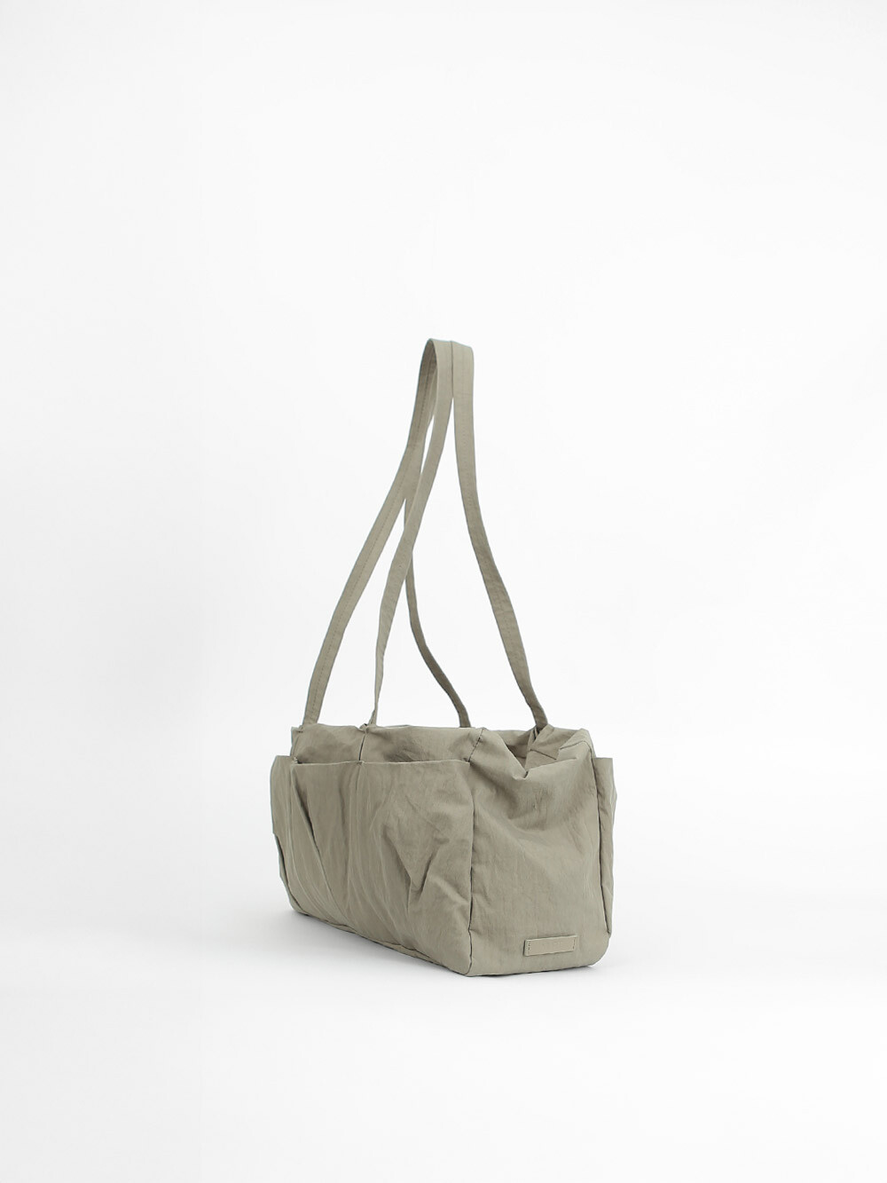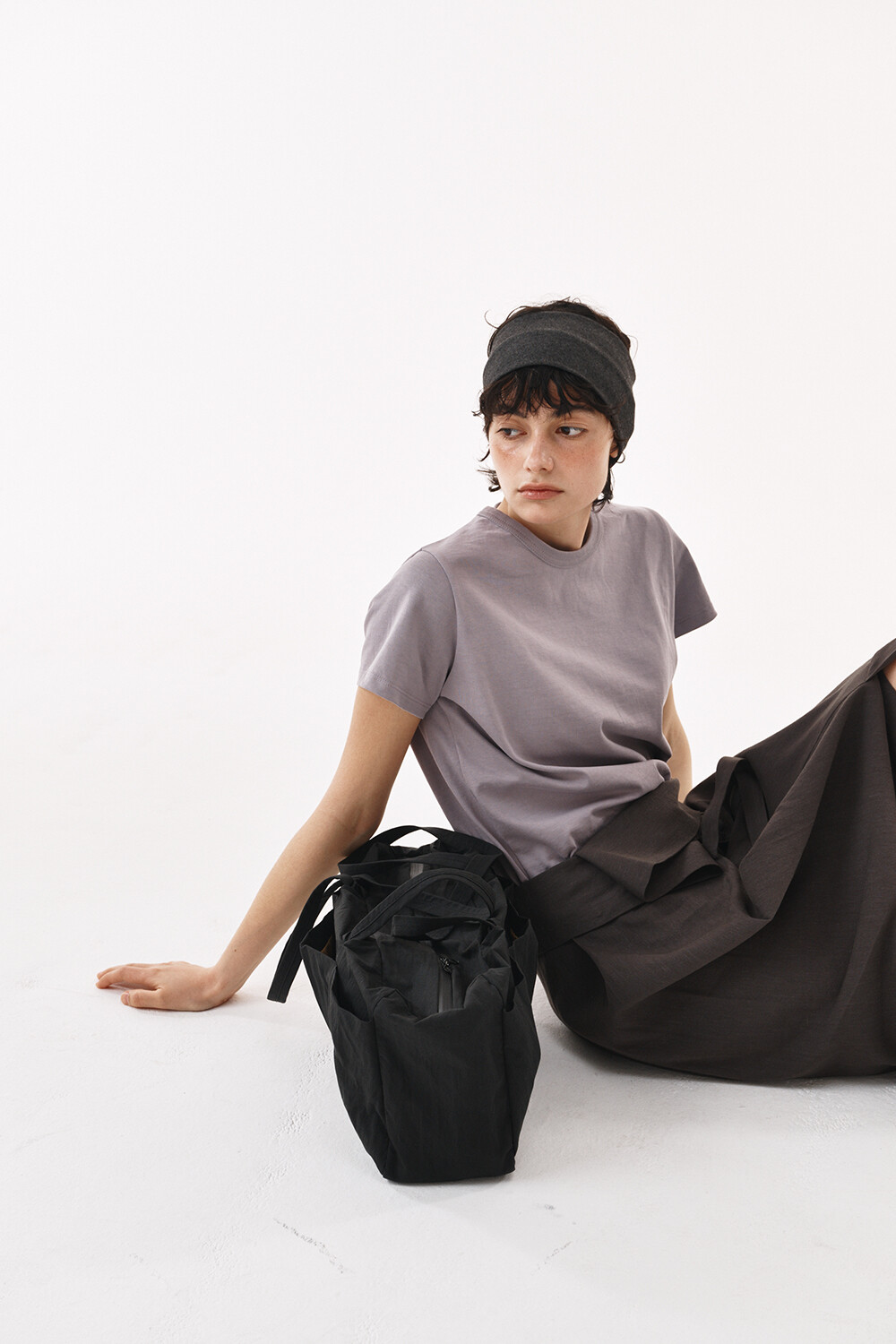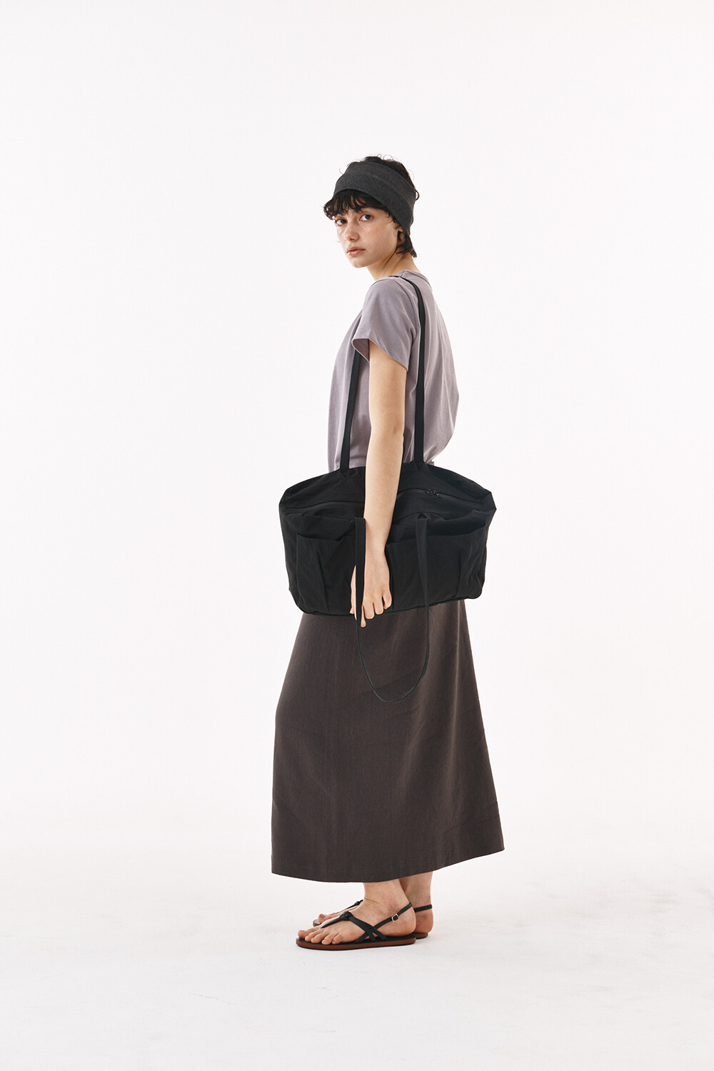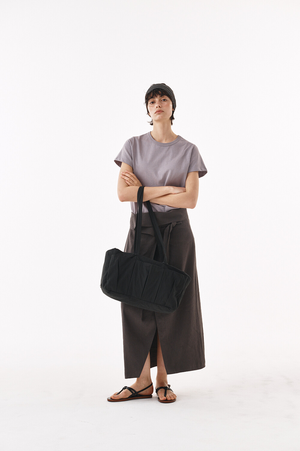 - 겉으로 보이는 봉제를 최소화하고 원단을 접어서 스트랩을 숨겨 간결한 디자인으로 완성하고 동시에 주름진 포켓이 만들어지는 디테일을 더했습니다.