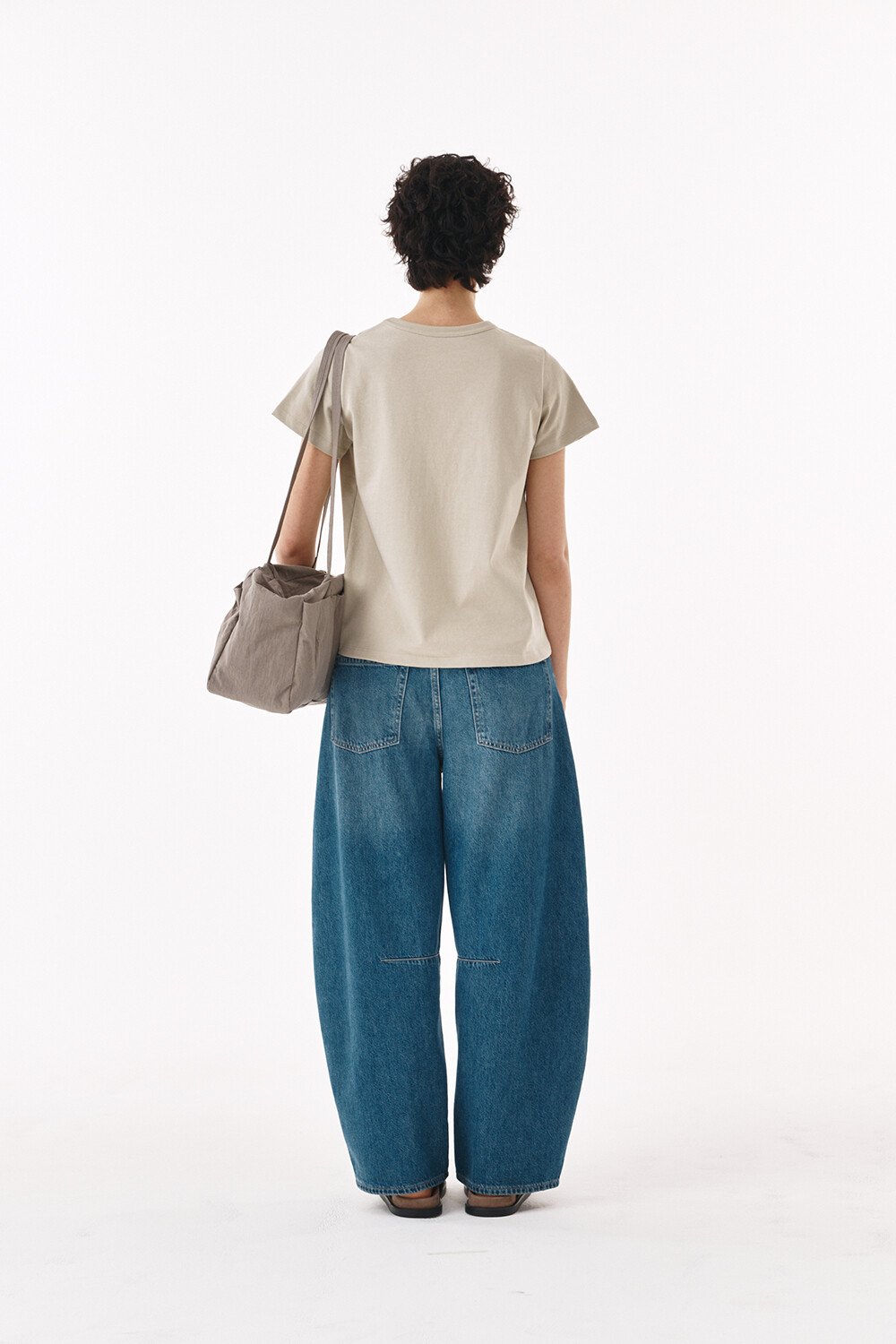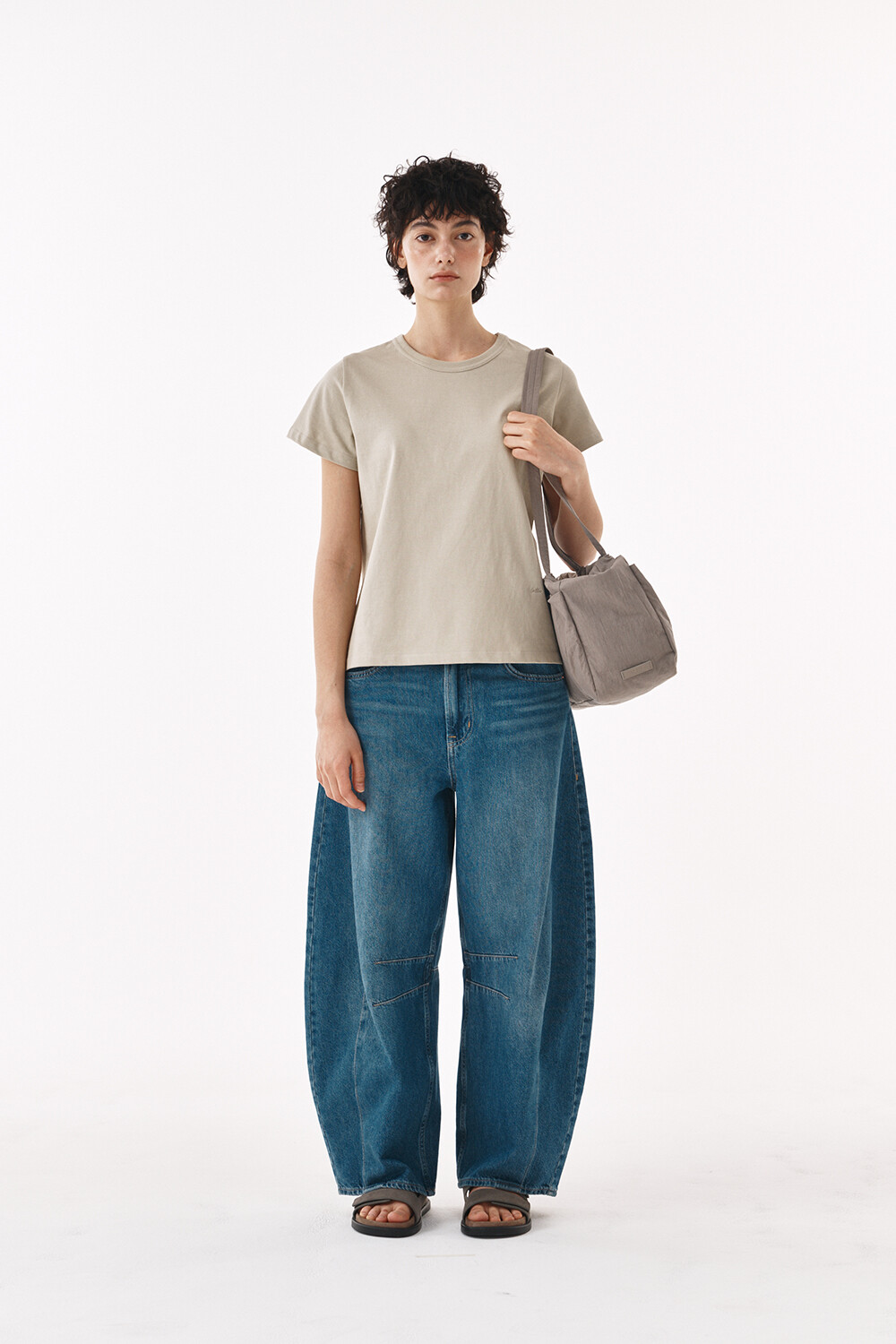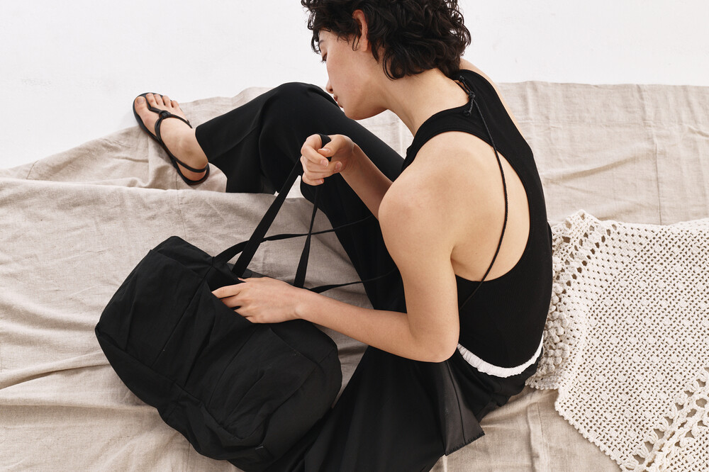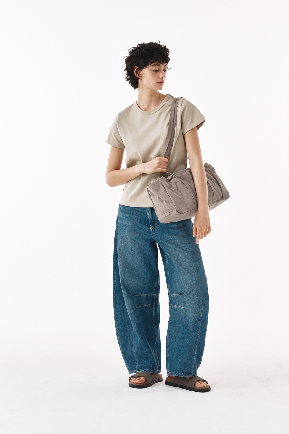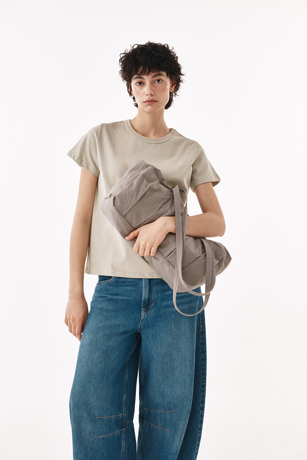 - 겉으로 보이는 봉제를 최소화하고 원단을 접어서 스트랩을 숨겨 간결한 디자인으로 완성하고 동시에 주름진 포켓이 만들어지는 디테일을 더했습니다.