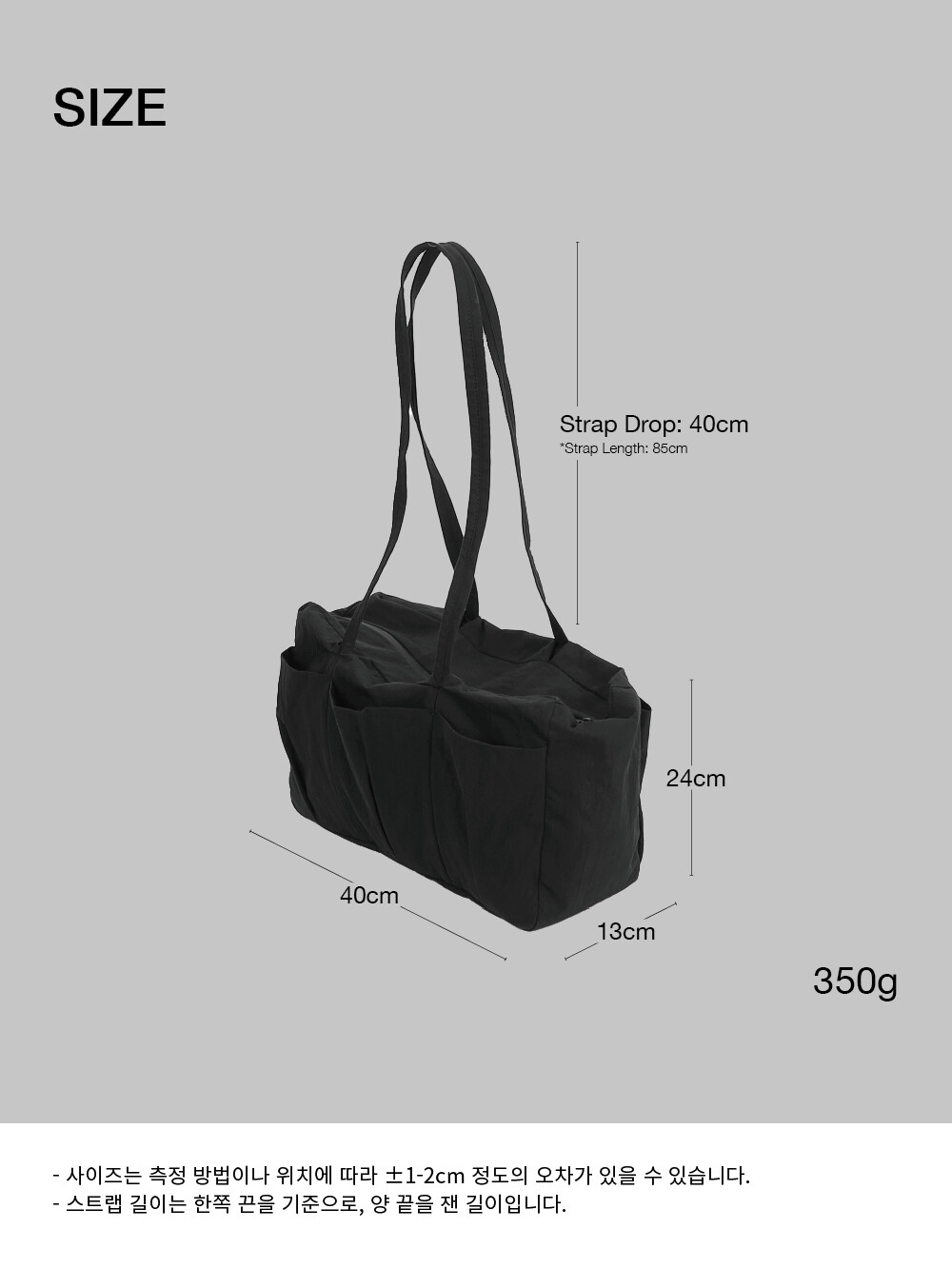 - 스퀘어 쉐잎의 넓은 내부공간과 앞 뒤로 총 6개의 외부포켓으로 높은 수납력이 특징입니다.