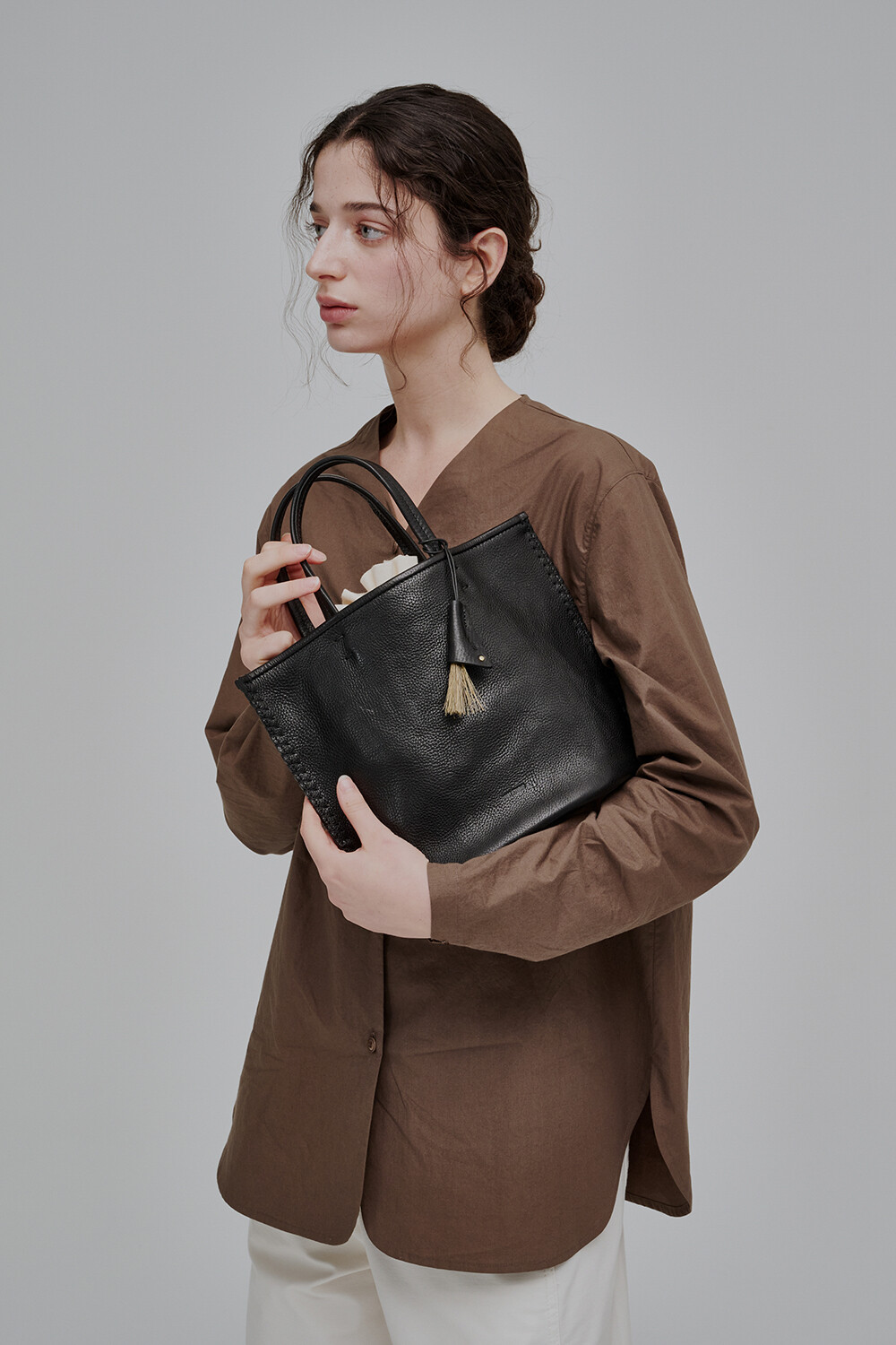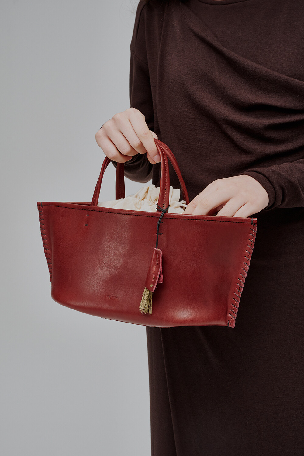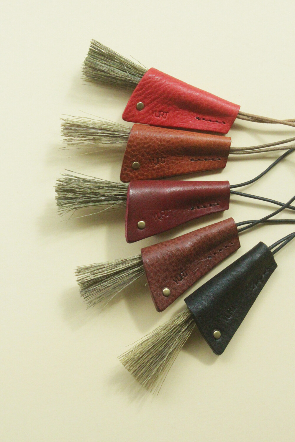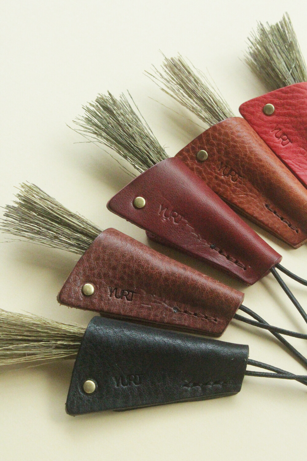 부정한 기운을 털어내고 좋은 기운을 가져다주며, 행운과 재물을 쓸어온다는 의미를 지닌 싸리 빗자루를 한 땀 한 땀 자르고 엮어 가죽을 덧입혀 참으로 완성했습니다. 사계절 내내 빛을 잃지 않는 소나무처럼 유르트의 솔 참을 사용하는 이들에게 행운을 가져다줄 수 있도록 푸른 소망의 마음을 담았습니다. 솔 참에 사용된 가죽은 이태리 베지터블 가죽으로 사용하는 손길에 맞게 깊은 에이징을 보여줍니다. 이처럼 사용자의 쌓여가는 시간 속 작은 친구처럼 오래 함께하며 행복과 기쁨을 나누고자 합니다.
