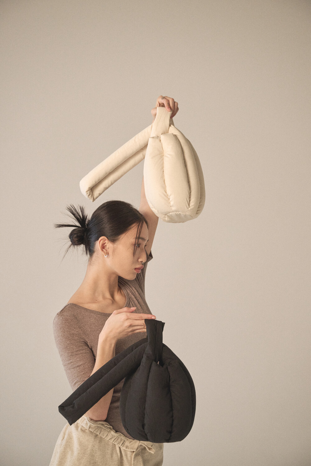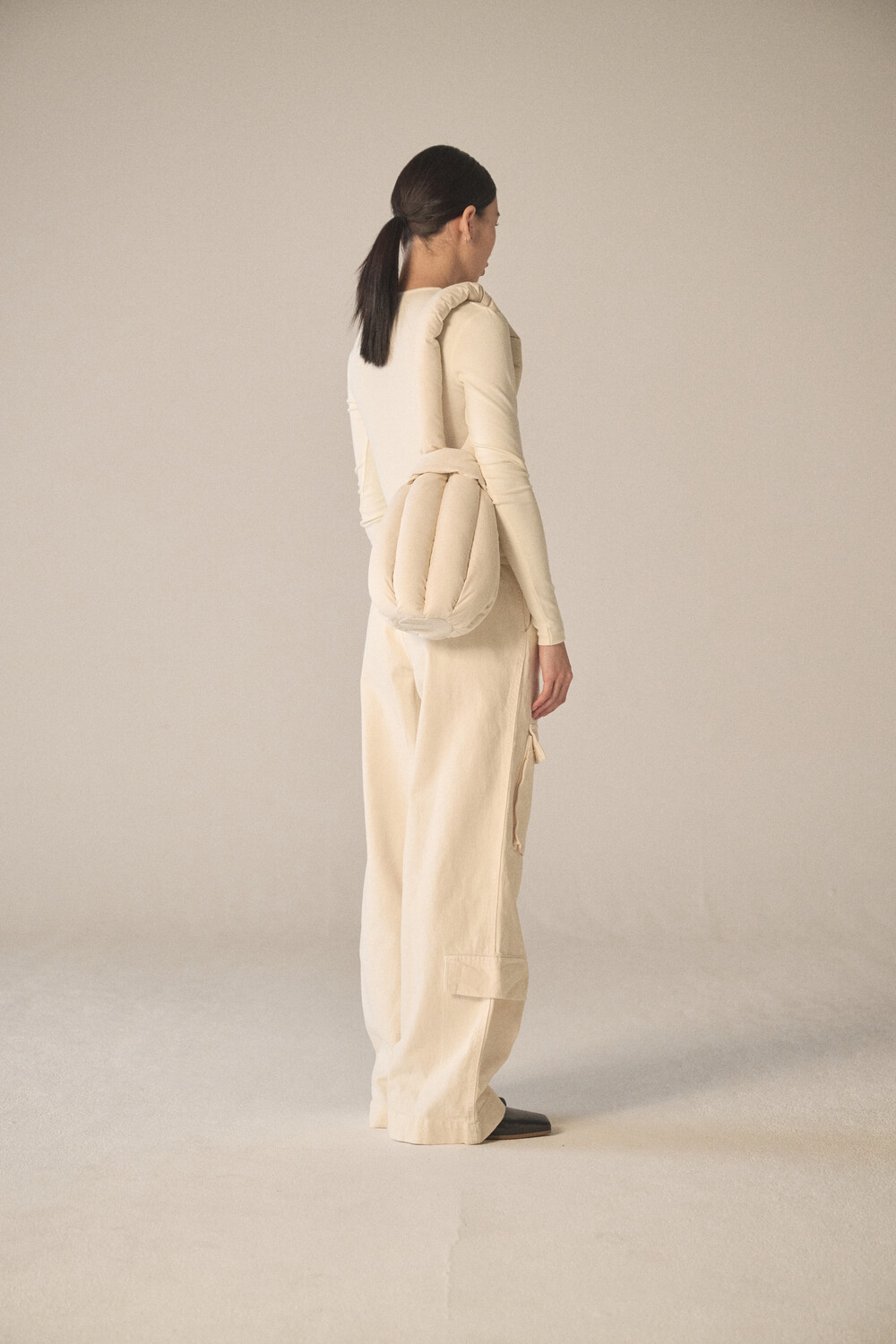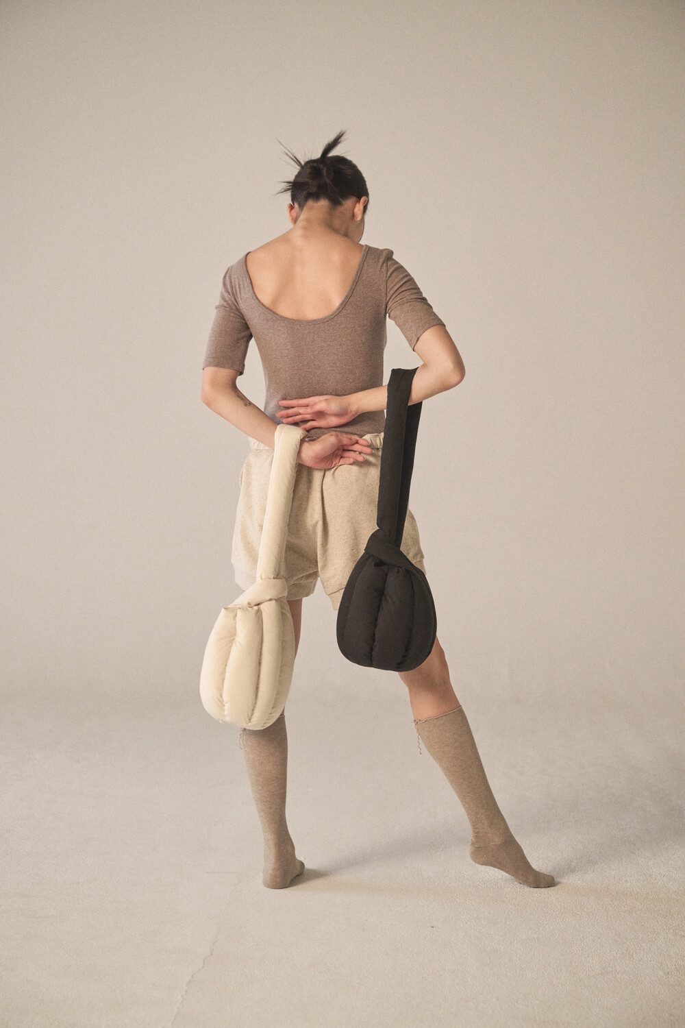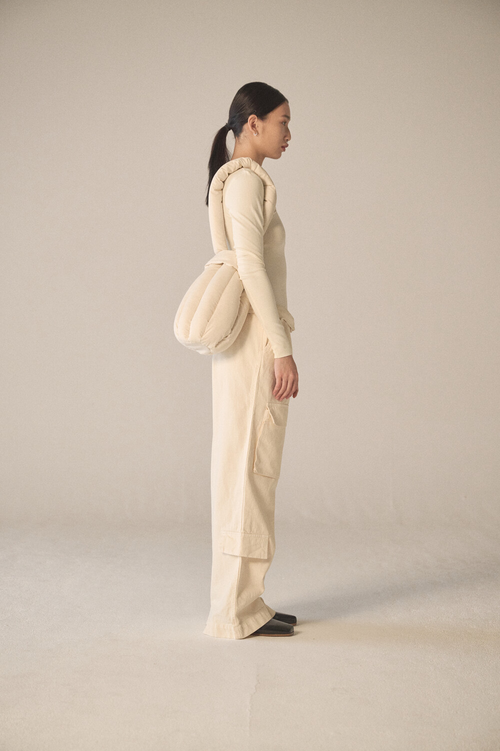 - 숄더 혹은 토트로 착용할 수 있도록 제작되었으며, 길이가 다른 두 스트랩을 엮어서 여미는 구조