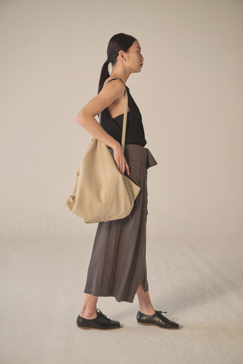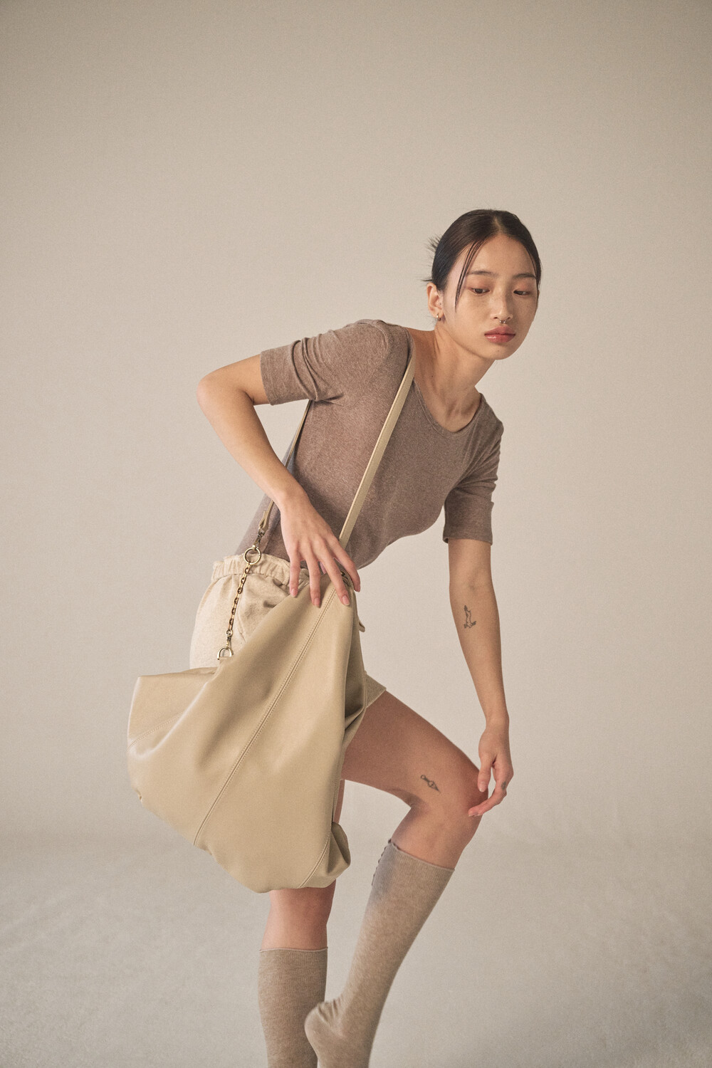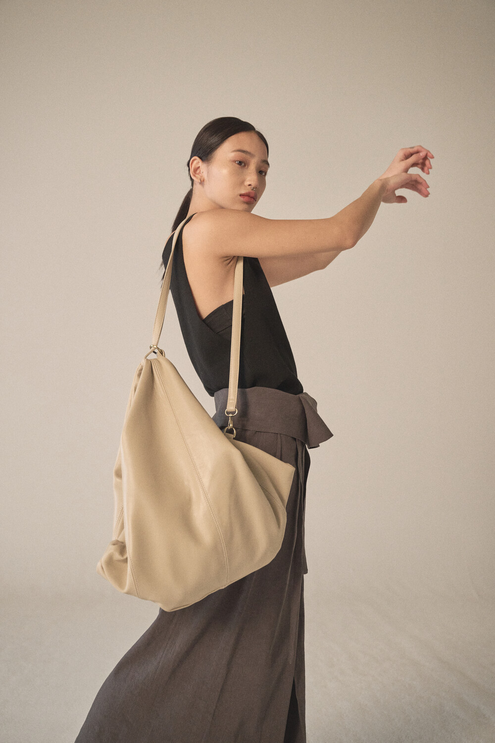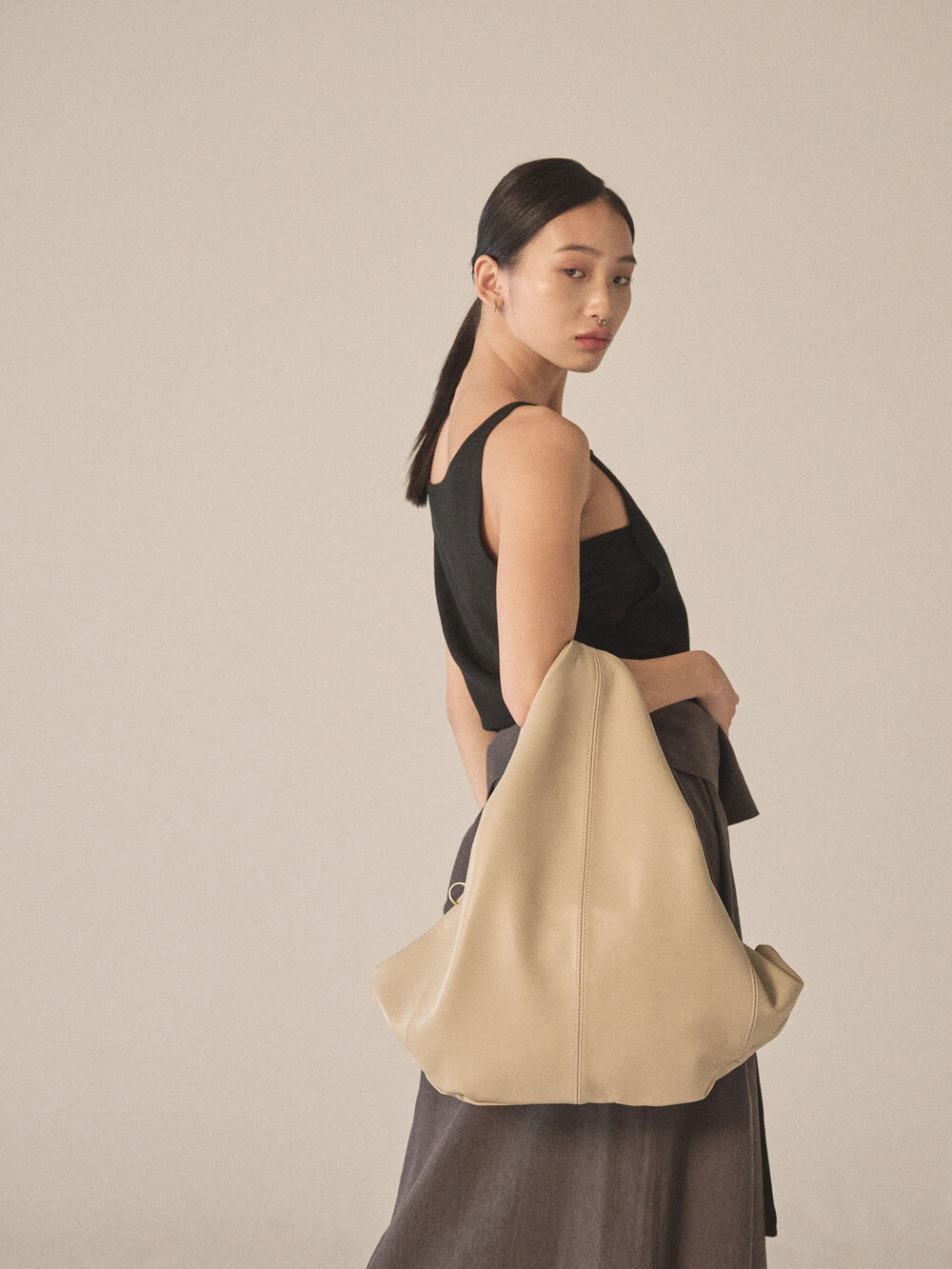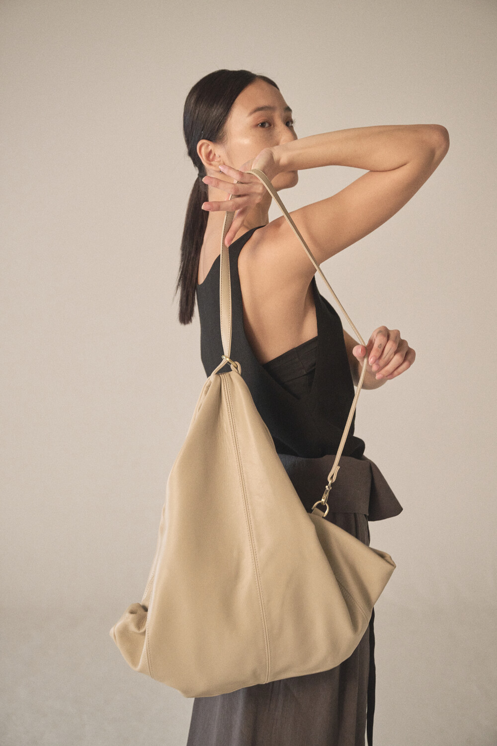 - 부드러운 양가죽으로 드레이프를 잡아 풍부한 실루엣을 연출한 유니크한 쉐입의 가방입니다. - 숨어있는 동그란 프레임으로 가방 입구를 여닫을 수 있습니다. - 숄더, 토트, 크로스 3way로 자유로운 연출이 가능합니다. 별도의 크로스 스트랩은 토트 손잡이에 연결 가능하며, 이 경우 백팩으로 연출됩니다. - 유연한 가죽으로 넉넉한 수납이 용이하며, 시간이 지날수록 가죽이 부드러워지면서 좀 더 유연한 디자인으로 바뀌게 됩니다. - 프레임 연결 부분이 가죽과 맞닿아 있으며, 이 부분은 오므렸을 때 경첩에 맞물린 가죽 두께만큼 손잡이가 살짝 벌어집니다. 이는 사용하면서 맞물린 부분의 가죽이 길이 들어 점차 잘 여며지게 됩니다.