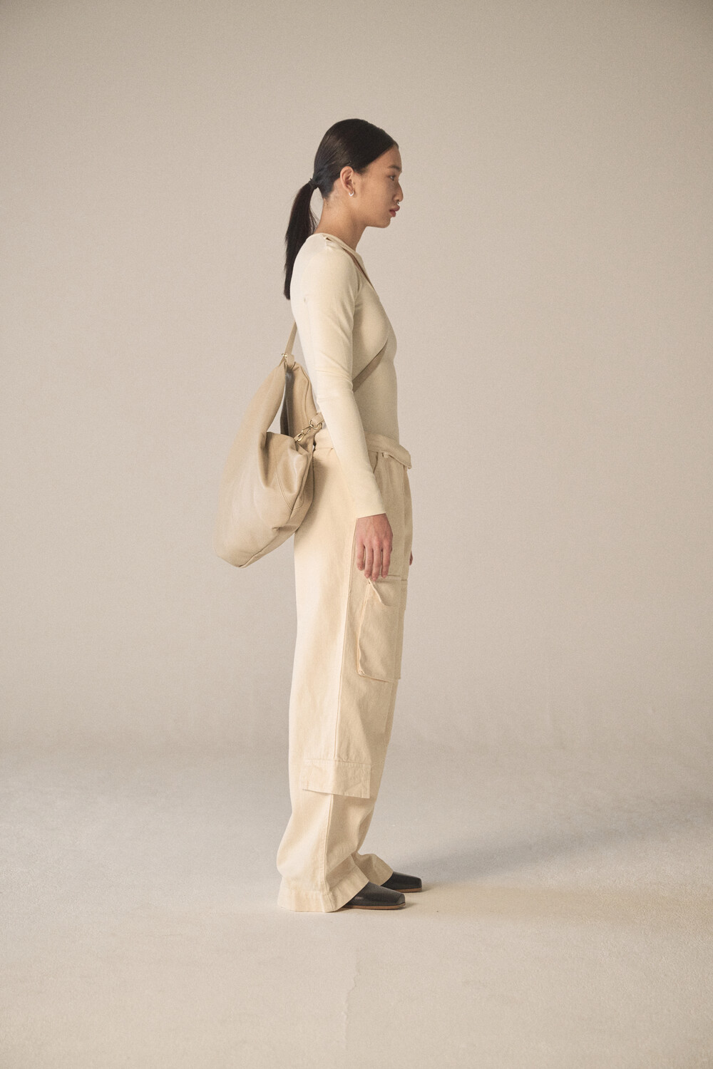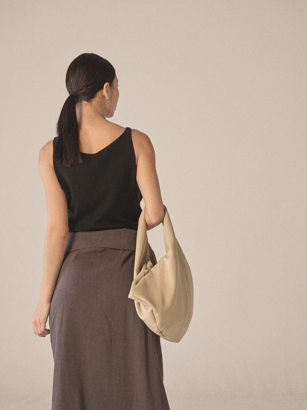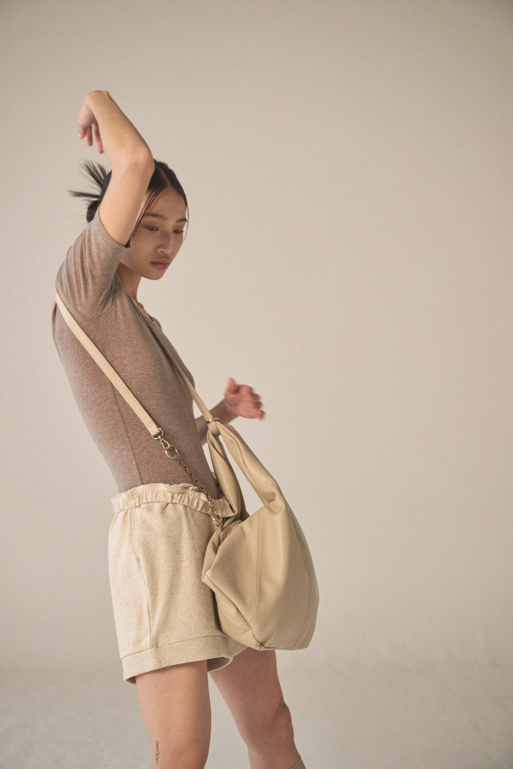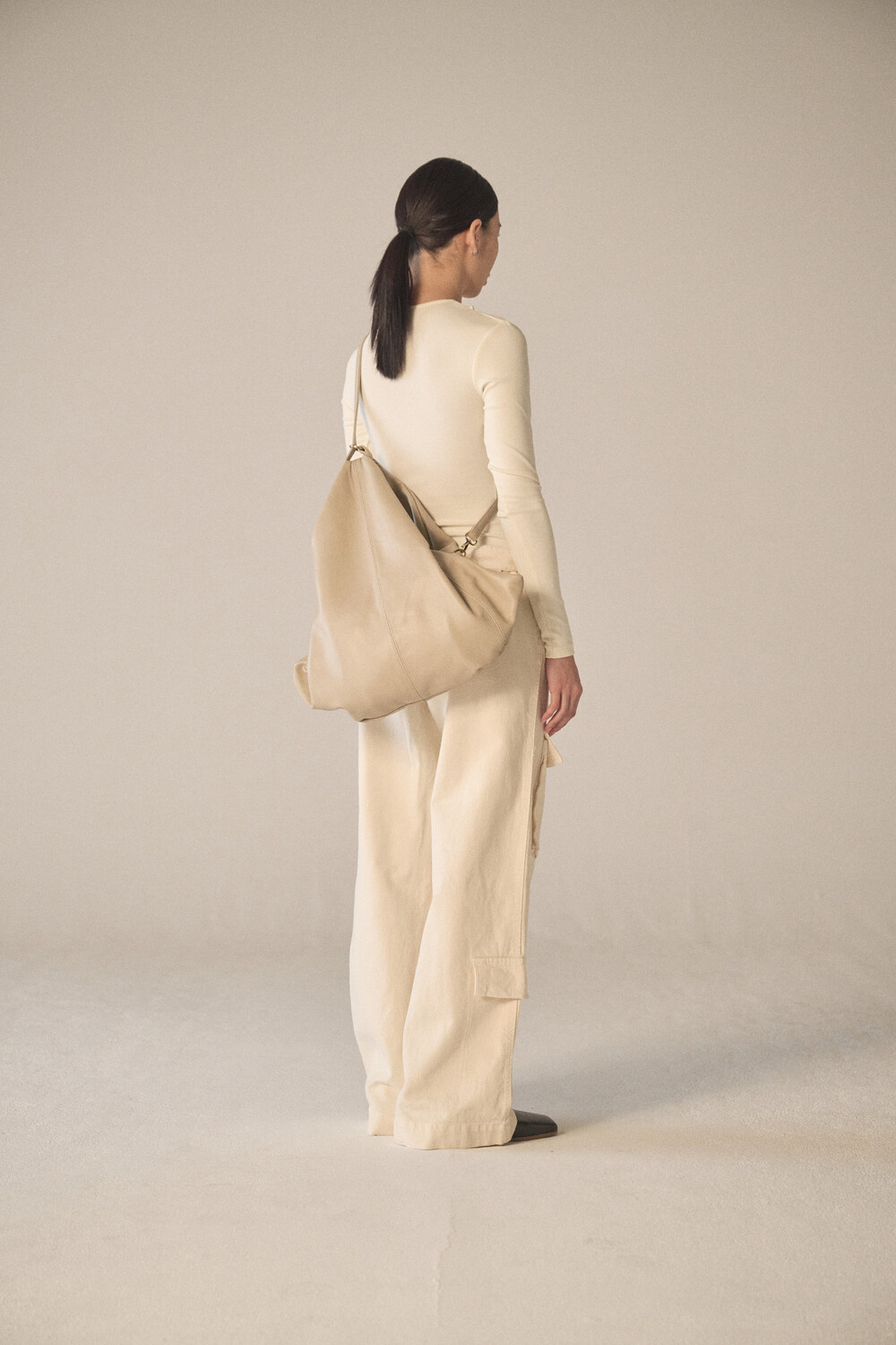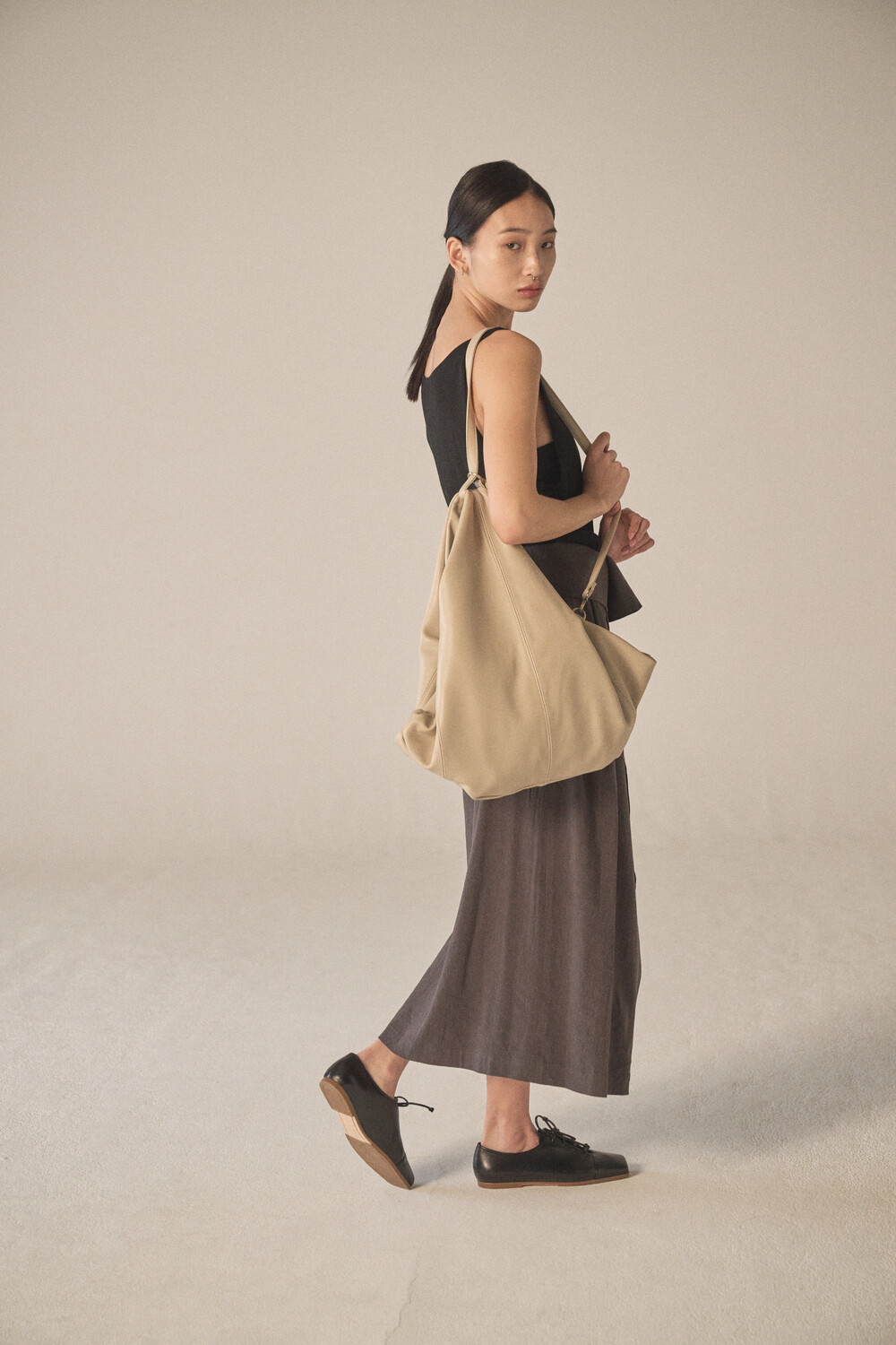 - 부드러운 양가죽으로 드레이프를 잡아 풍부한 실루엣을 연출한 유니크한 쉐입의 가방입니다. - 숨어있는 동그란 프레임으로 가방 입구를 여닫을 수 있습니다. - 숄더, 토트, 크로스 3way로 자유로운 연출이 가능합니다. 별도의 크로스 스트랩은 토트 손잡이에 연결 가능하며, 이 경우 백팩으로 연출됩니다. - 유연한 가죽으로 넉넉한 수납이 용이하며, 시간이 지날수록 가죽이 부드러워지면서 좀 더 유연한 디자인으로 바뀌게 됩니다. - 프레임 연결 부분이 가죽과 맞닿아 있으며, 이 부분은 오므렸을 때 경첩에 맞물린 가죽 두께만큼 손잡이가 살짝 벌어집니다. 이는 사용하면서 맞물린 부분의 가죽이 길이 들어 점차 잘 여며지게 됩니다.