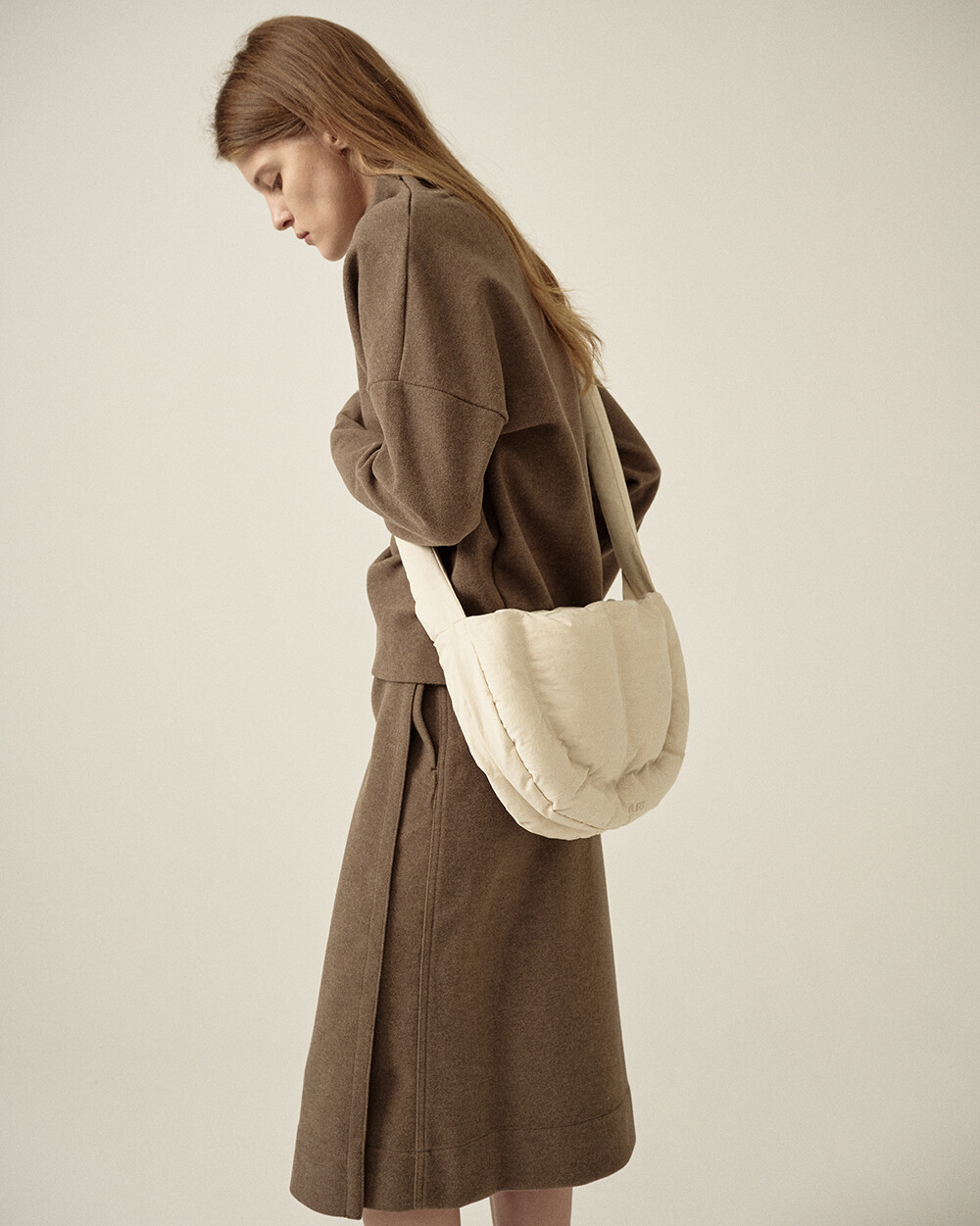 - 동양의 라인에서 영감받은 유연한 곡선 패턴, 입체적인 컷팅으로 볼륨감 있는 실루엣이 특징