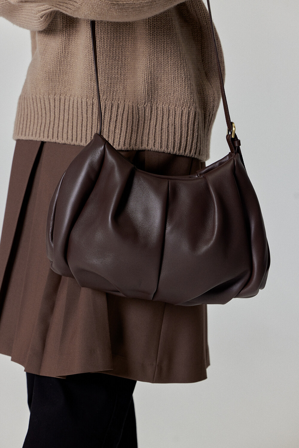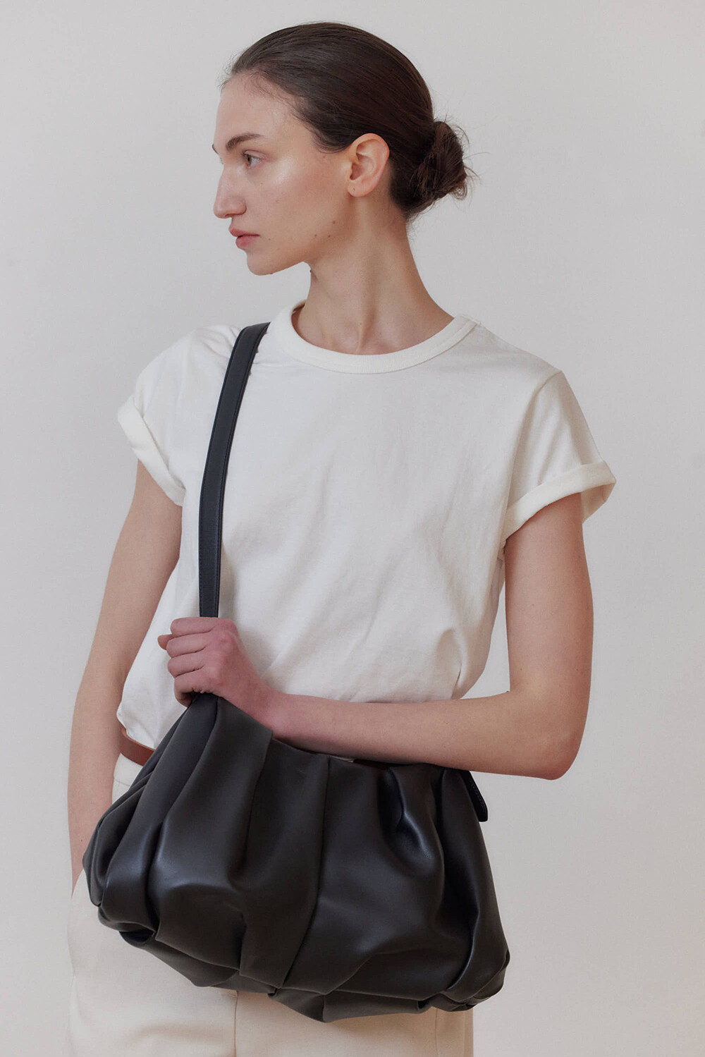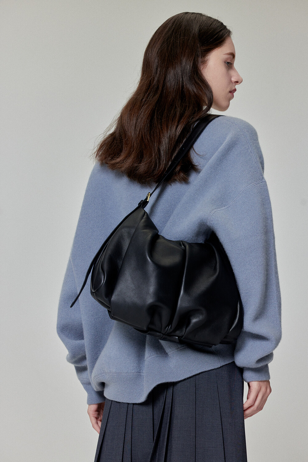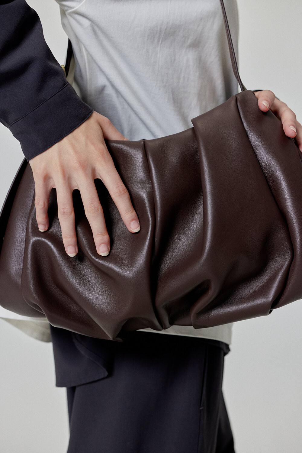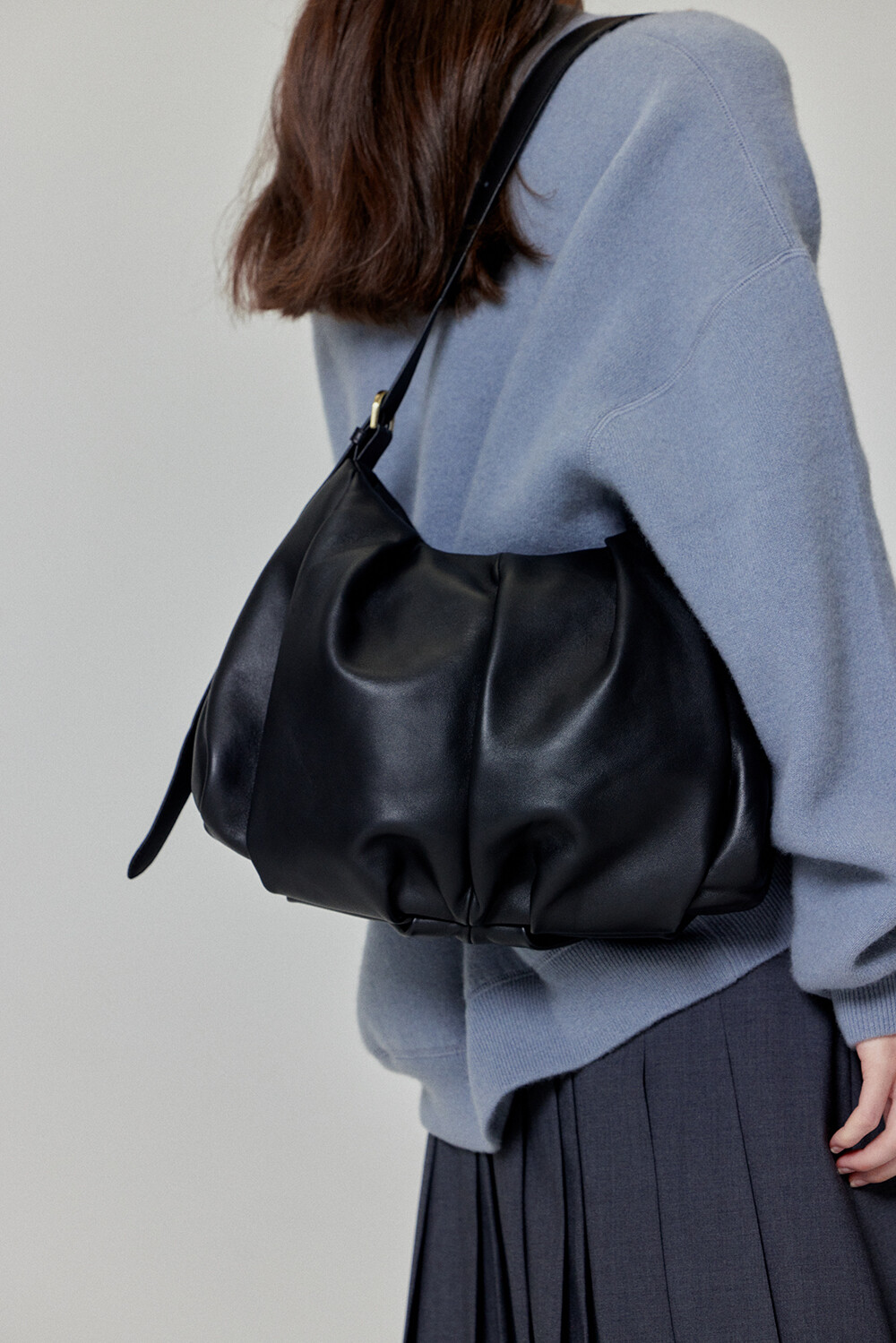 - 부드러운 양가죽을 드레이핑하여 흐르는 결의 실루엣을 극대화한 데일리백입니다.