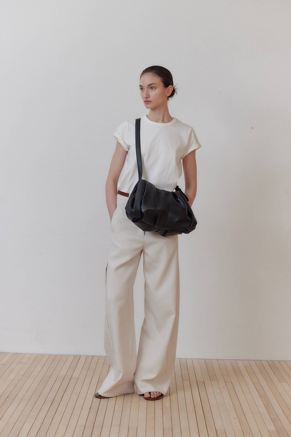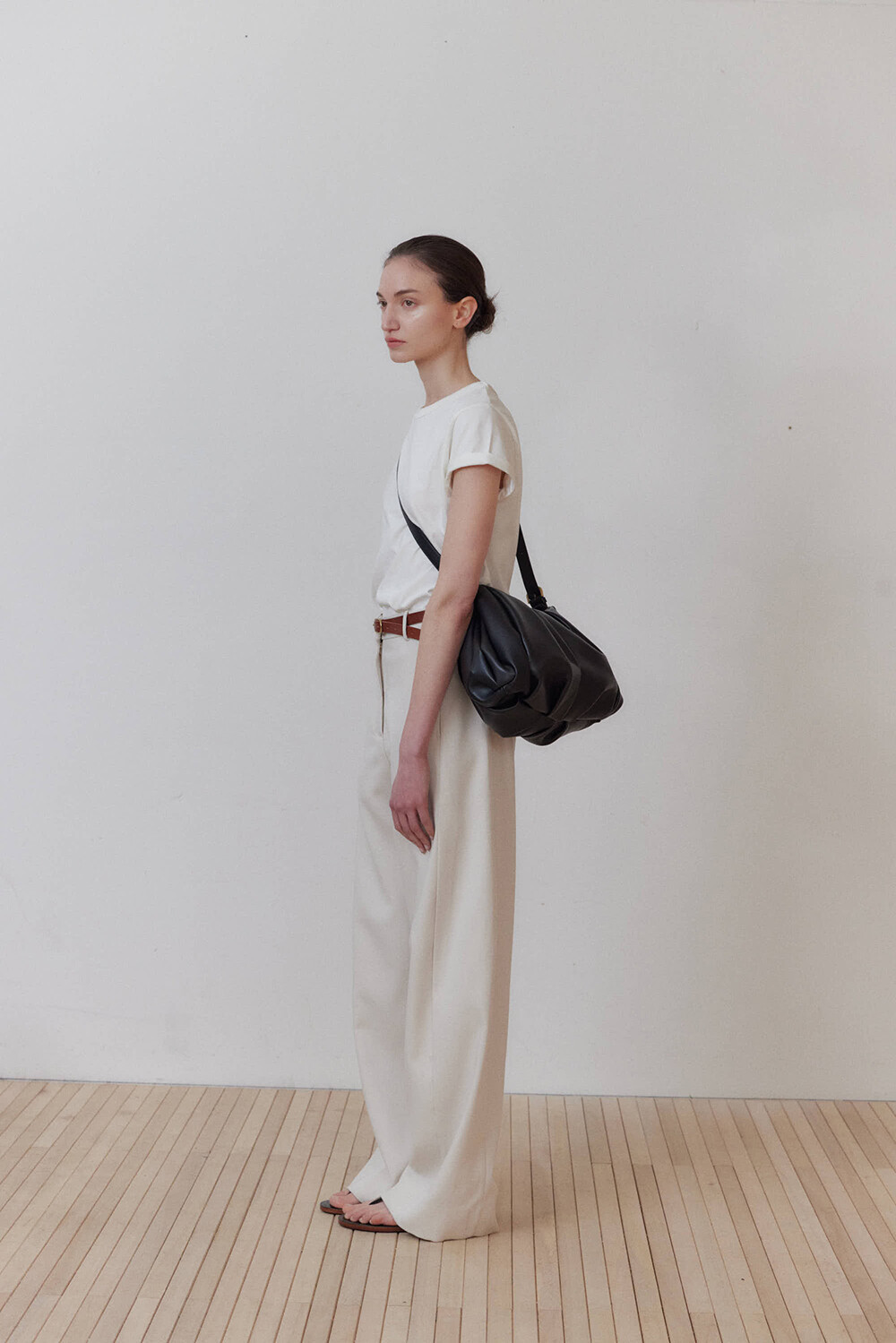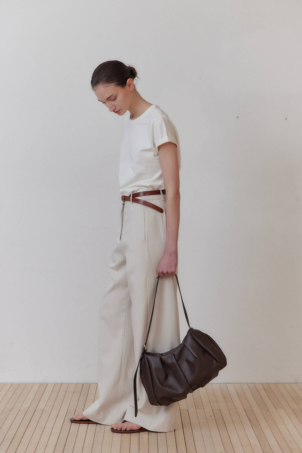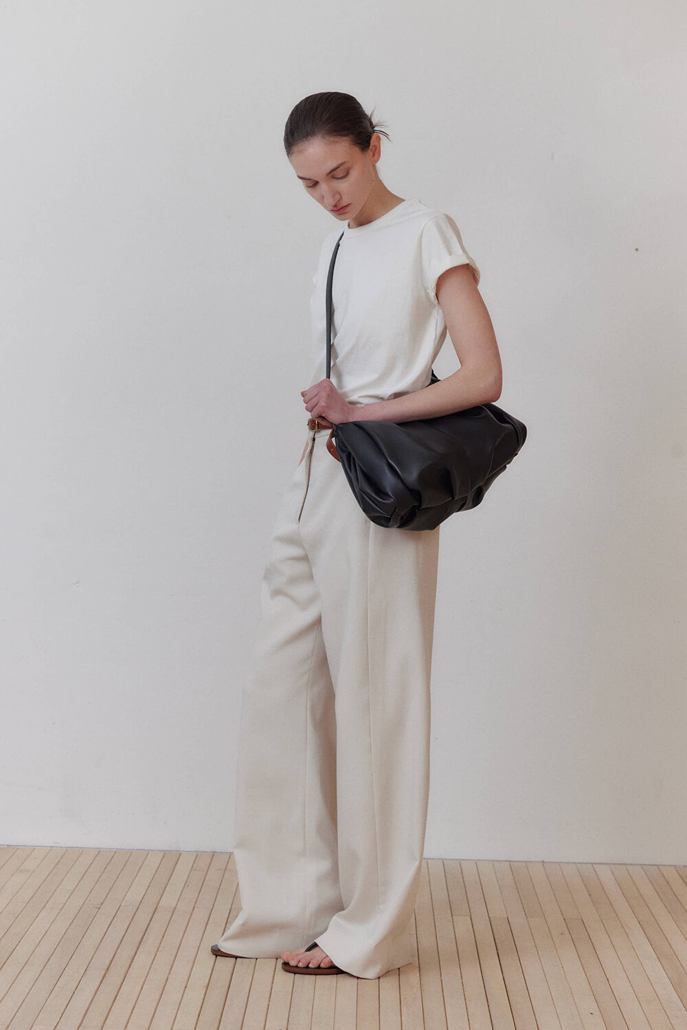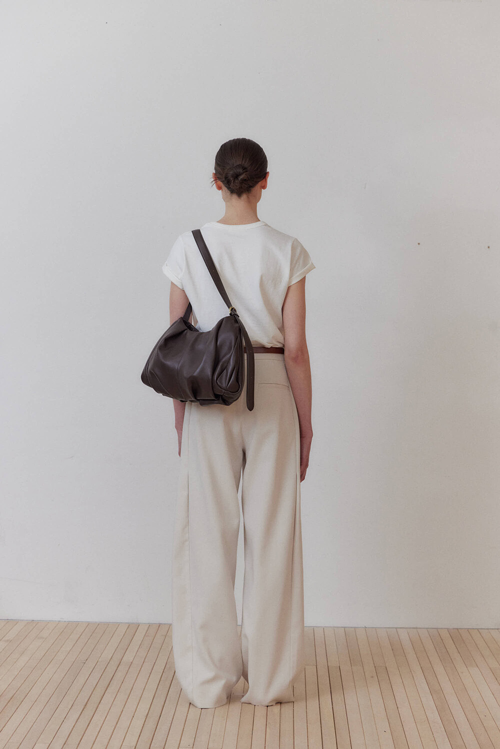 - 부드러운 양가죽을 드레이핑하여 흐르는 결의 실루엣을 극대화한 데일리백입니다.