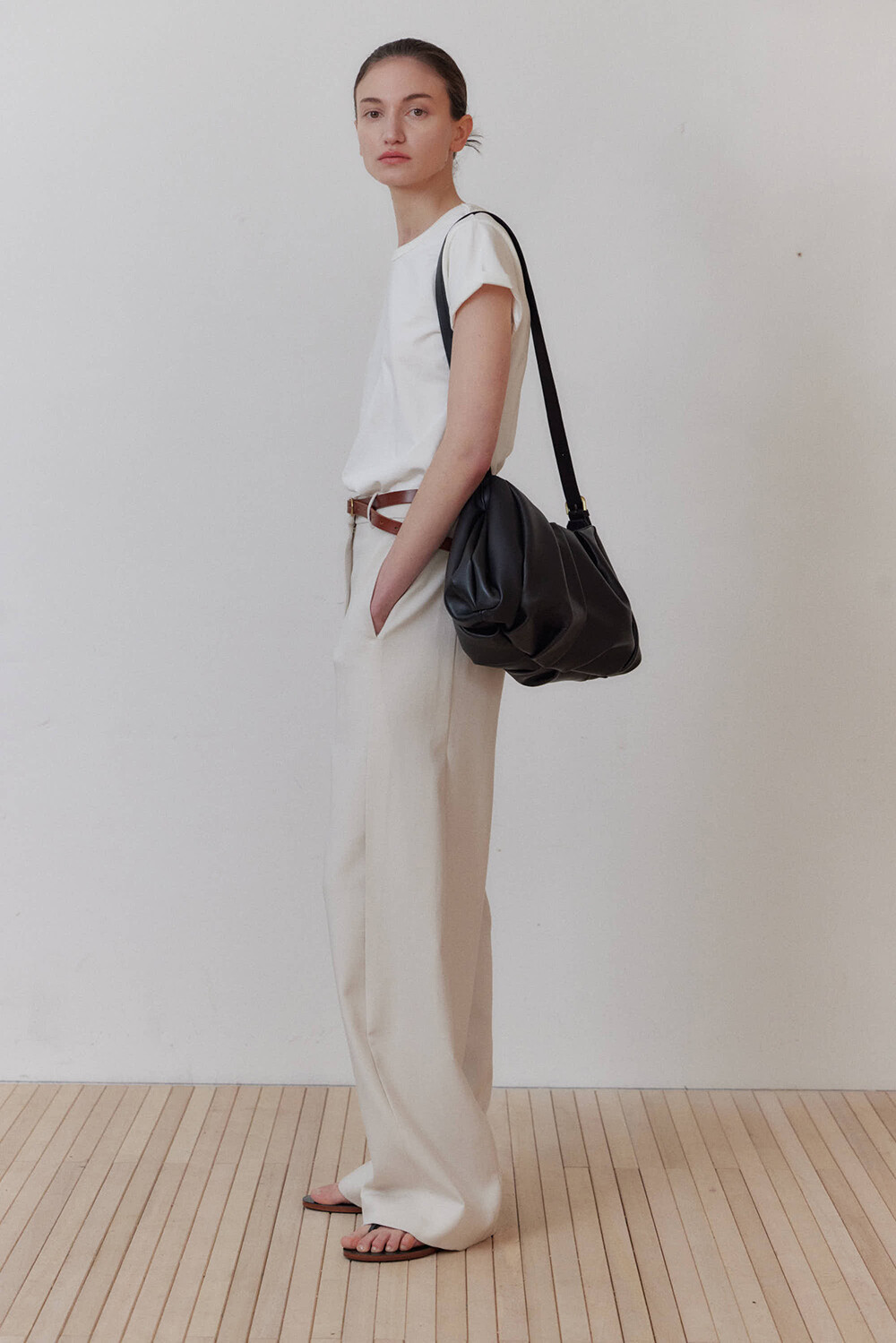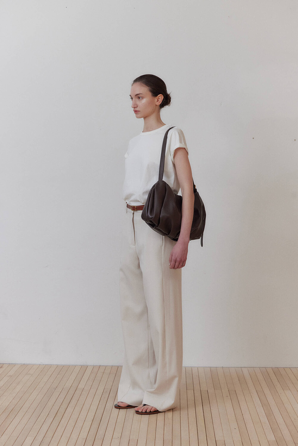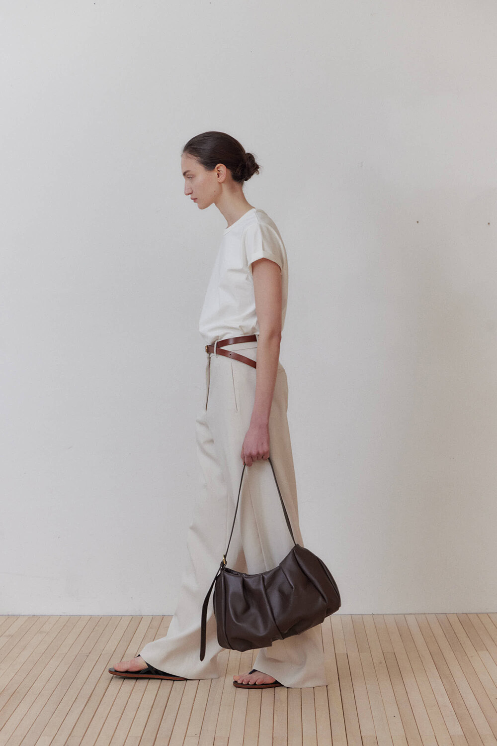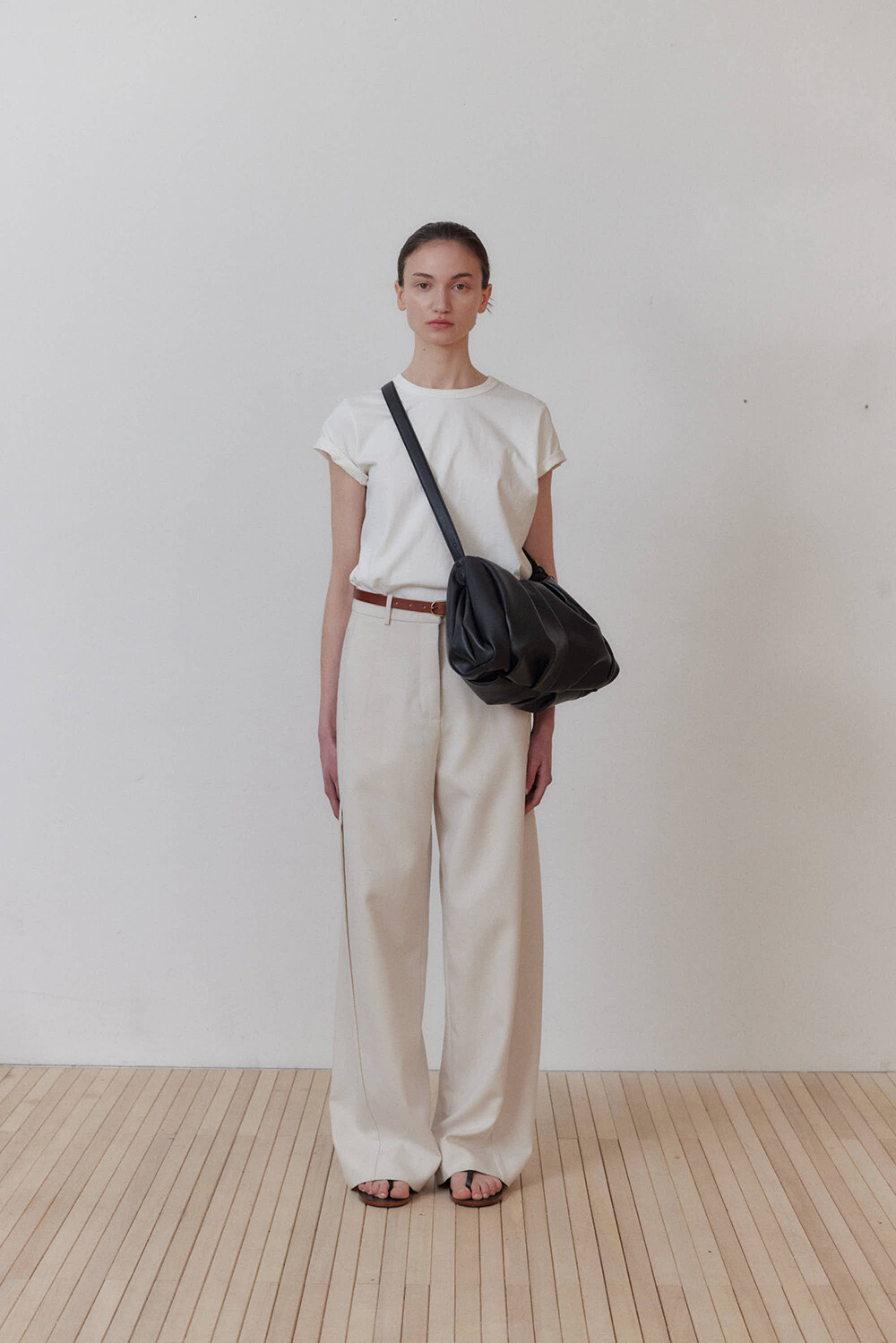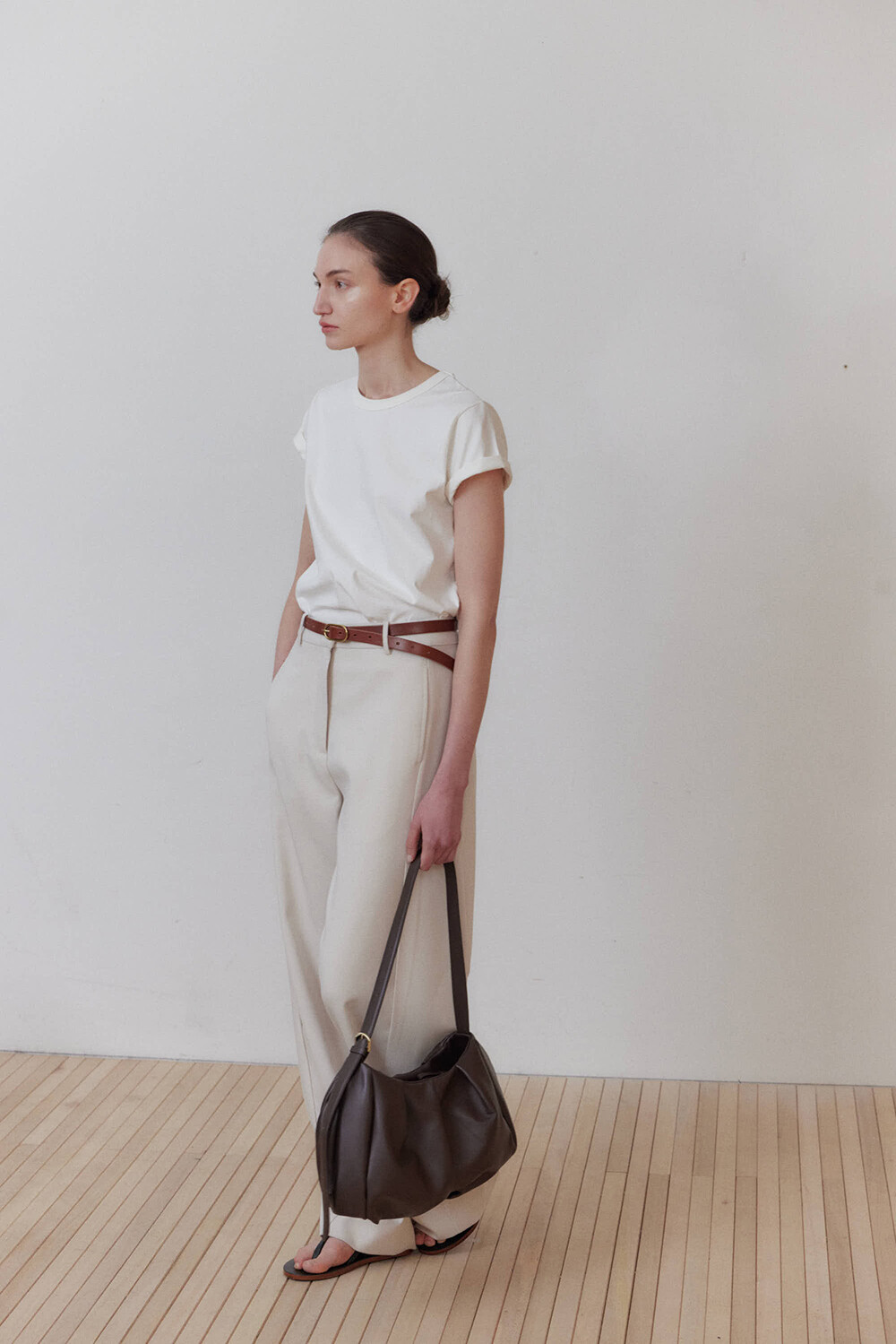 - 부드러운 양가죽을 드레이핑하여 흐르는 결의 실루엣을 극대화한 데일리백입니다.