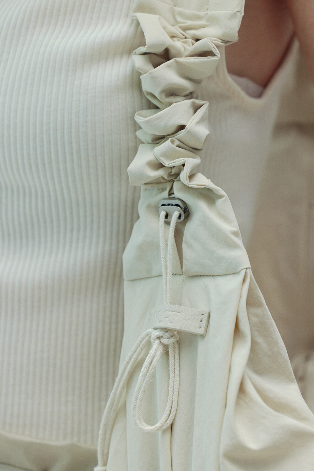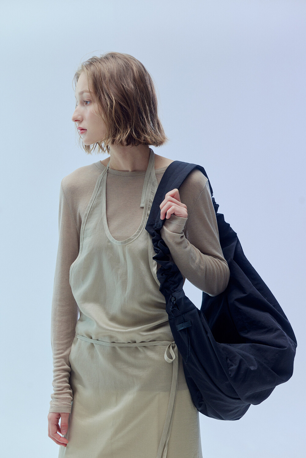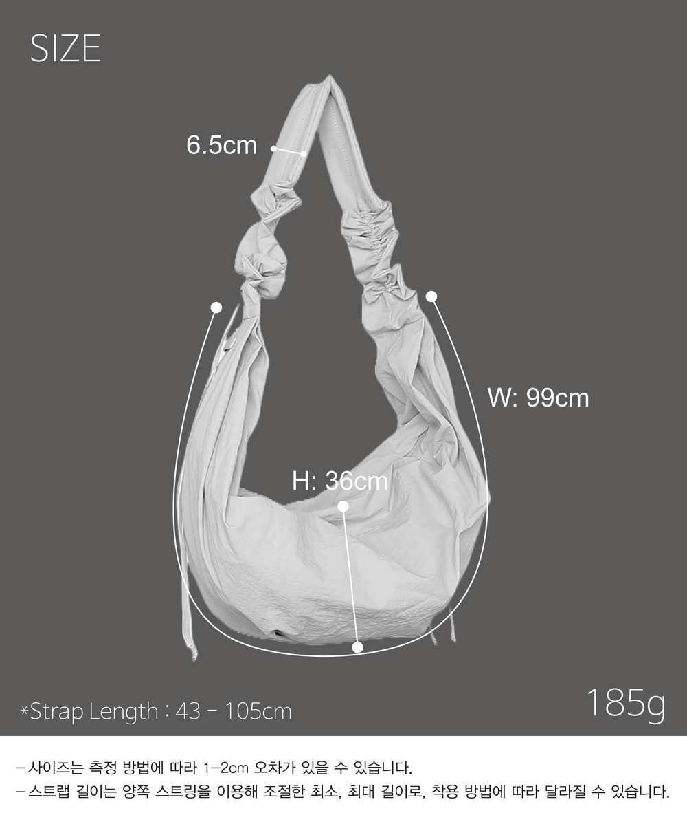 - 스트랩 양 끝의 스트링으로 실루엣과 스트랩 길이를 자유롭게 연출할 수 있습니다.
