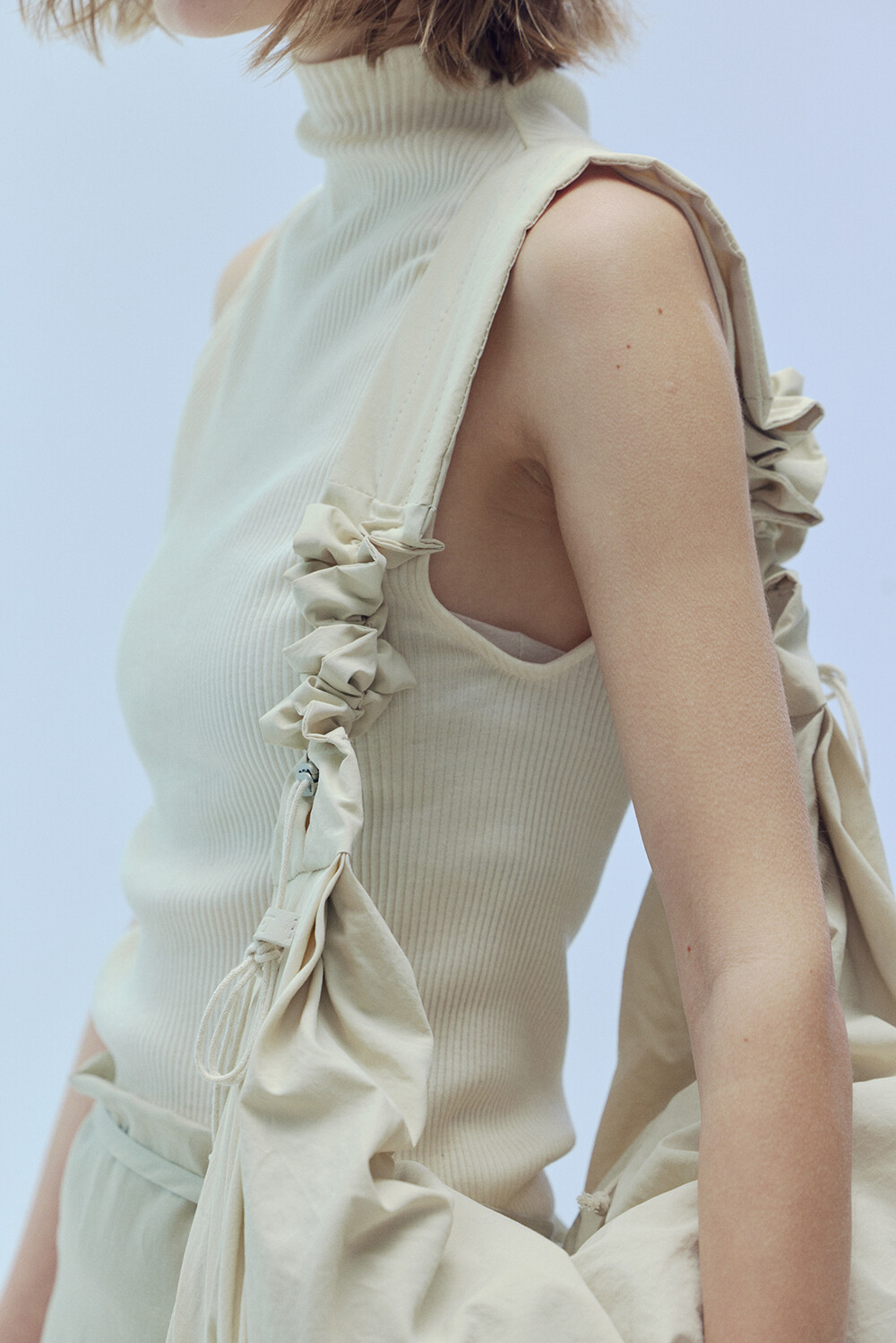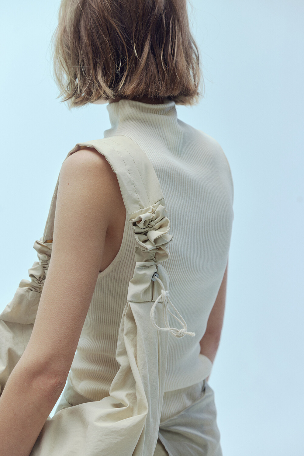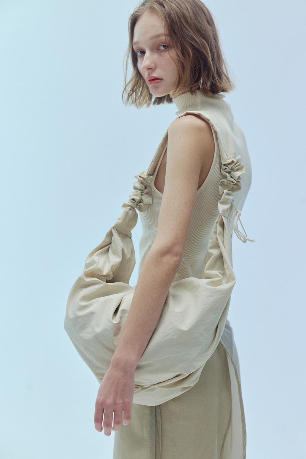 - 스트랩 양 끝의 스트링으로 실루엣과 스트랩 길이를 자유롭게 연출할 수 있습니다.